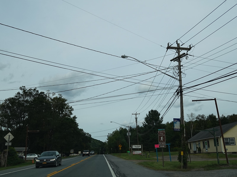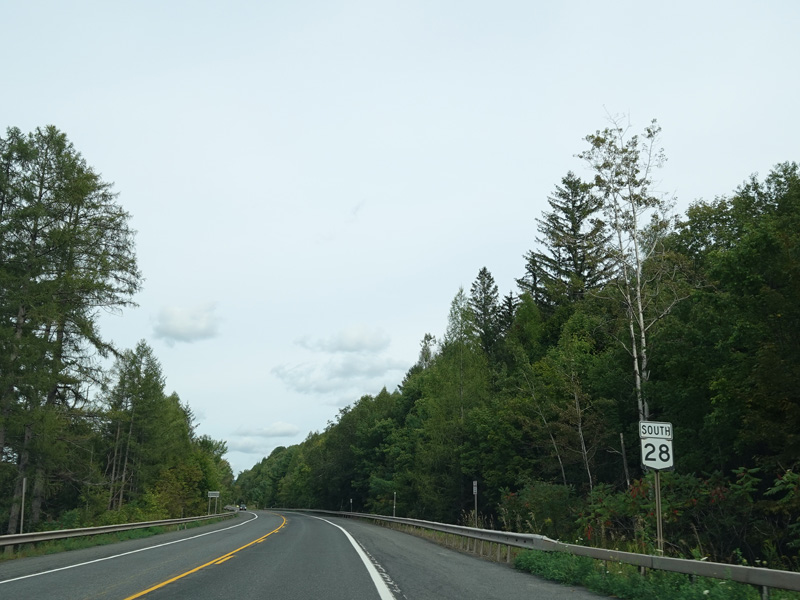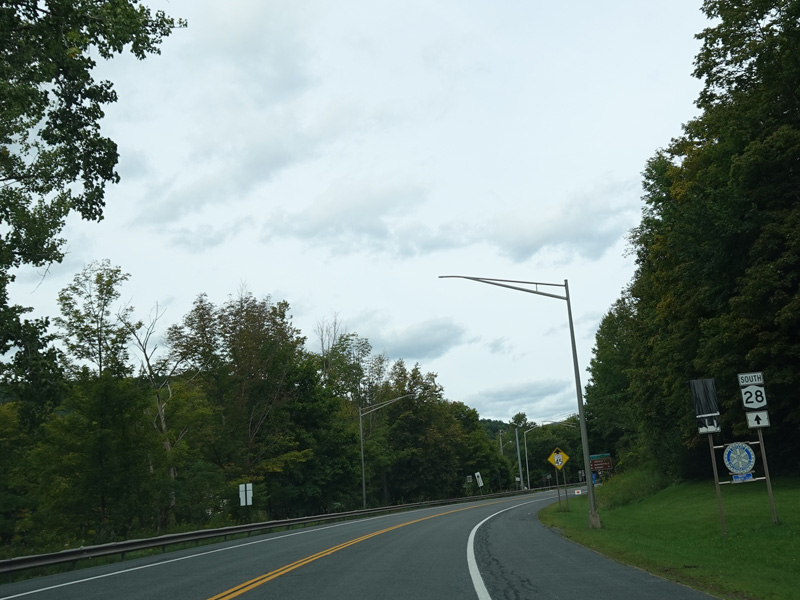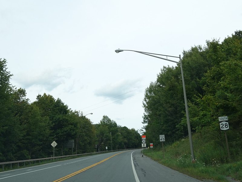 The two routes split at a flasher. Turn right for NY 30. Continue straight ahead to stay on NY 28.