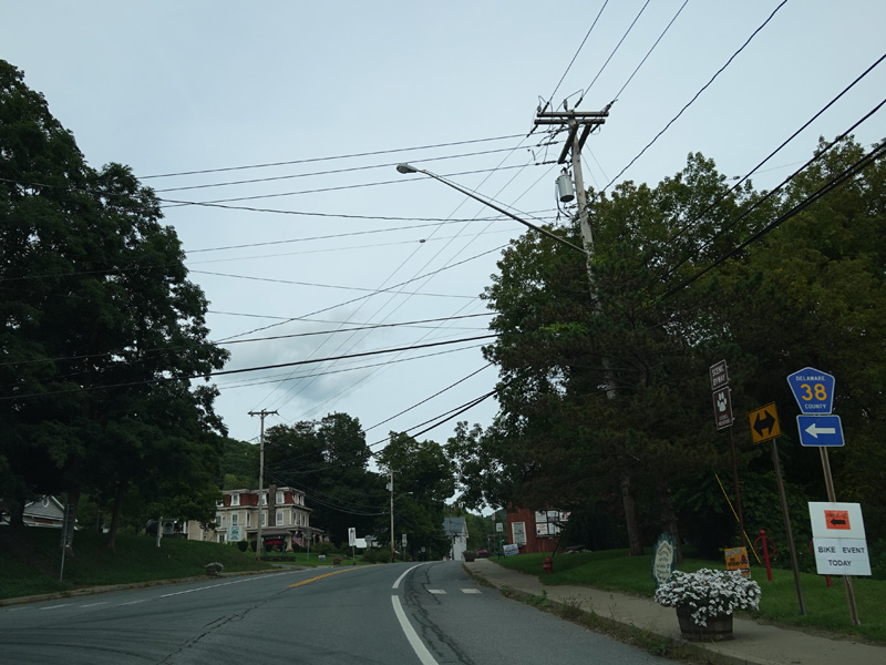 Colonel Chandler Drive, Onteora Trail, Main Street, Delaware Avenue, Andes Road, Kingston Street, Meredith Street, South Main Street, North Main Street, Chestnut Street, Glen Avenue, West Lake Road, Prospect Street, Columbia Street, Warren Street, East Main Street, Caroline Street, State Street, Middleville Road
