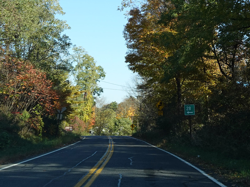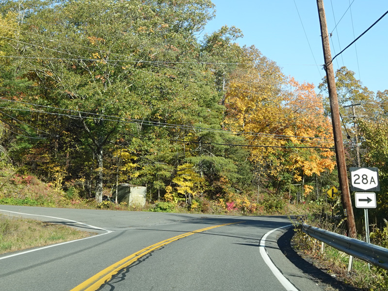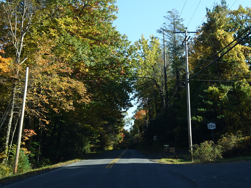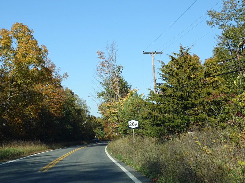 NY 28A begins at NY 28 and runs east as a two-lane undivided road.