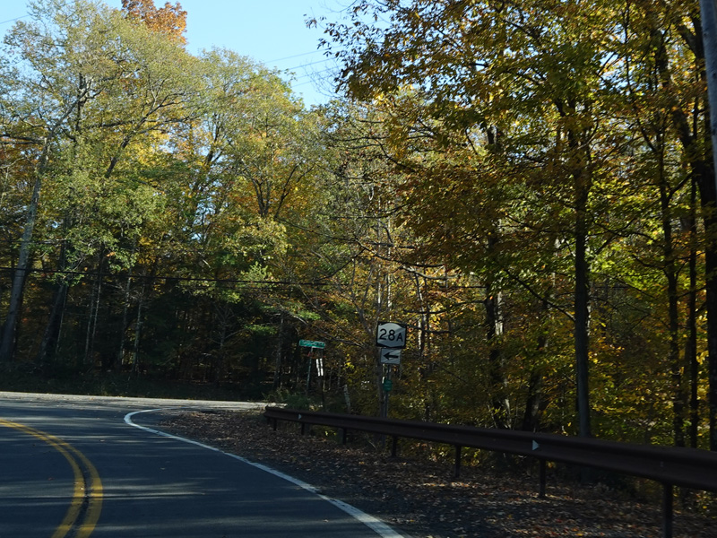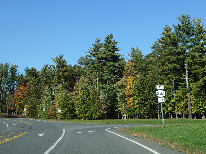 NY 28A ends at a stop sign at NY 28. Turn right to go east or left to go west.