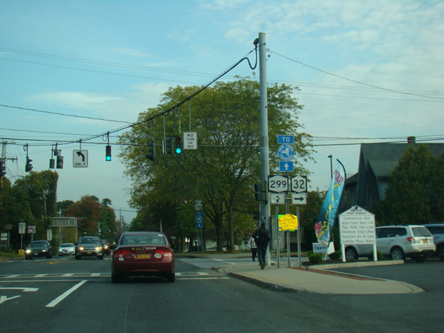 NY 299 is an east/west route in Ulster County. It begins at US 44/NY 55 just east of the Shawangunk Ridge and runs east to New Paltz, where it is known as Main Street and is multiplexed with NY 32 for a few blocks. After the two routes split, there is an interchange with the New York Thruway (I-87) at exit 18. NY 299 continues east to Highland, where it ends at US 9W, about a mile north of where it meets US 44/NY 55.