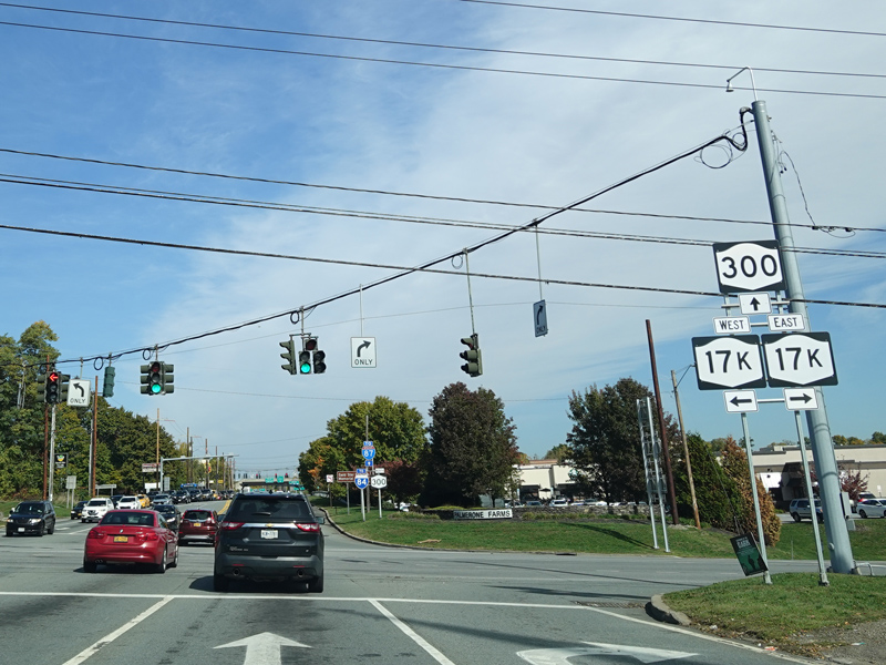 There is a traffic light at NY 17K. Turn right to go east or left to go west.