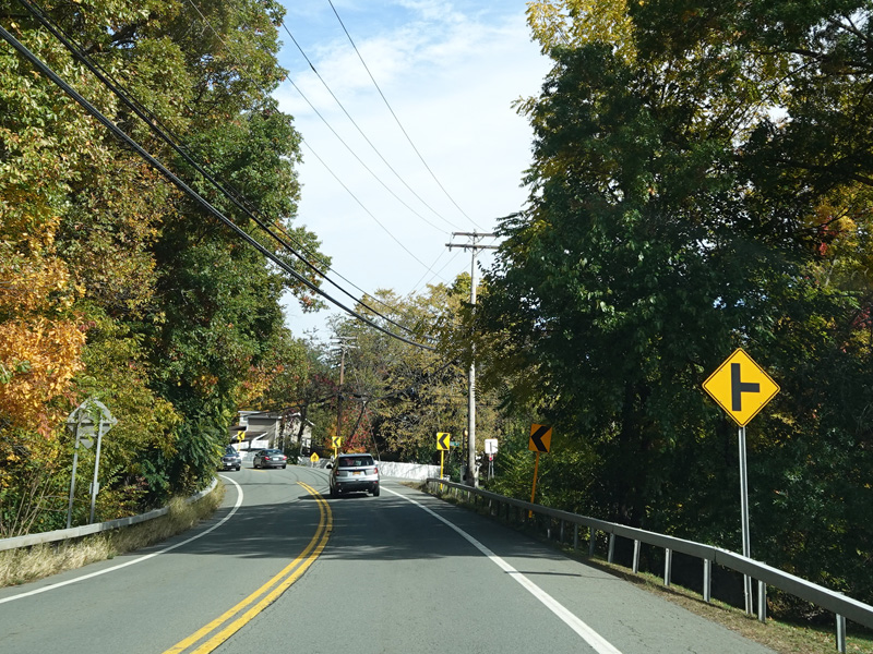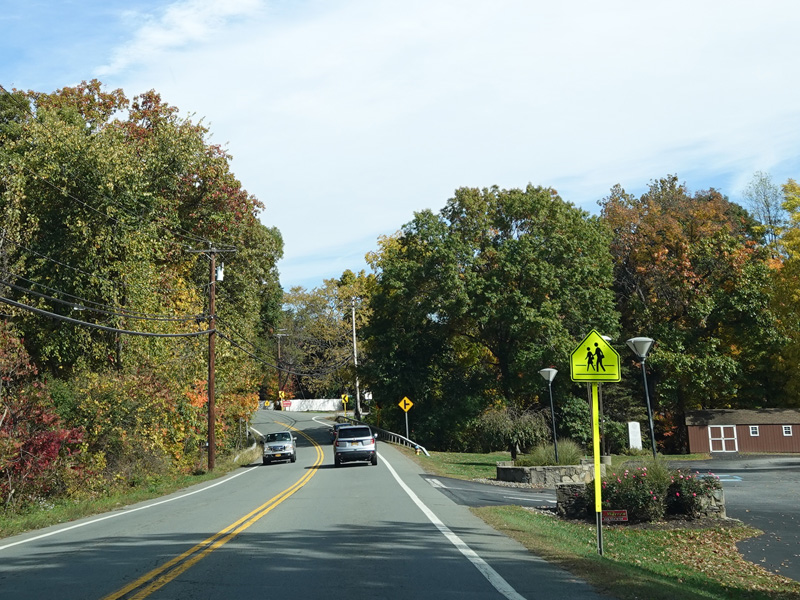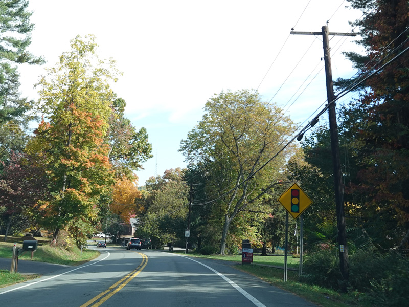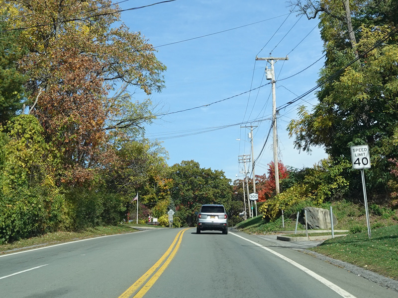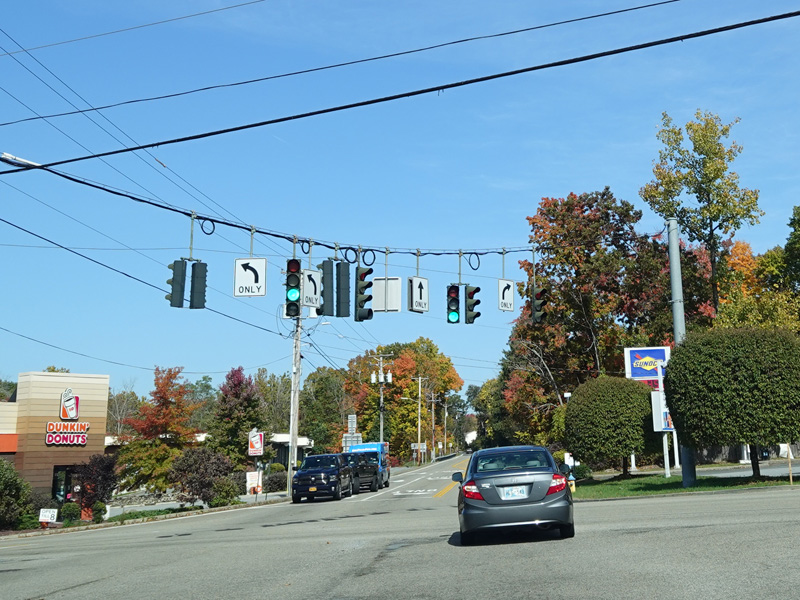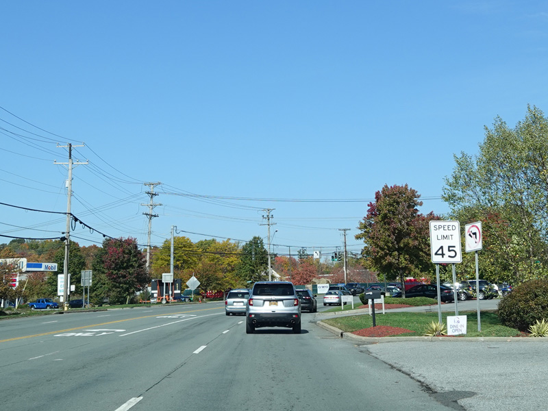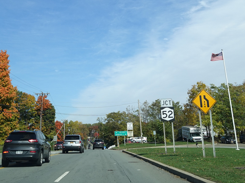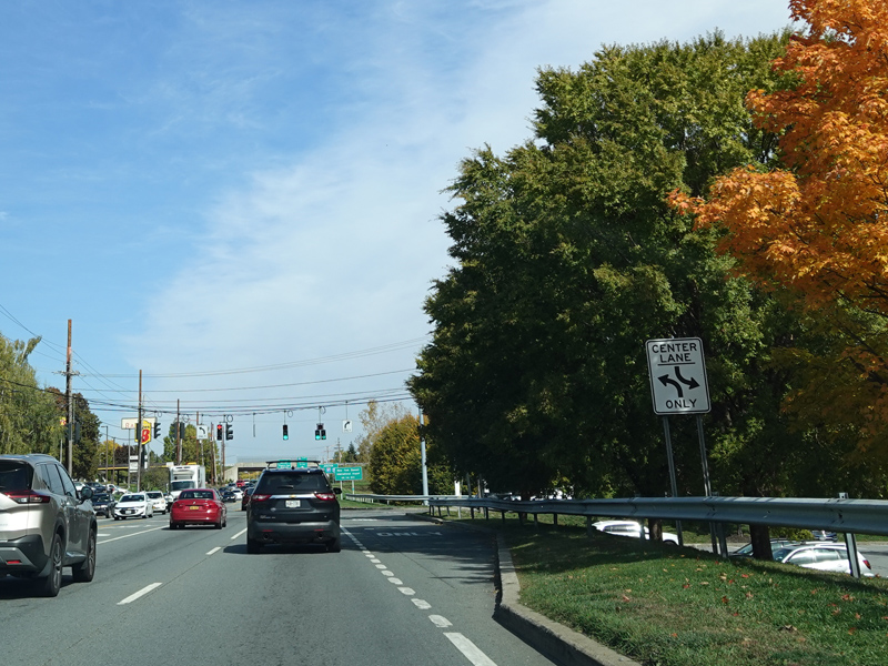 Union Avenue narrows down to two lanes. There is a traffic light at South Plank Road (NY 52). Turn right to go east or left to go west.
