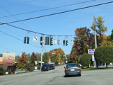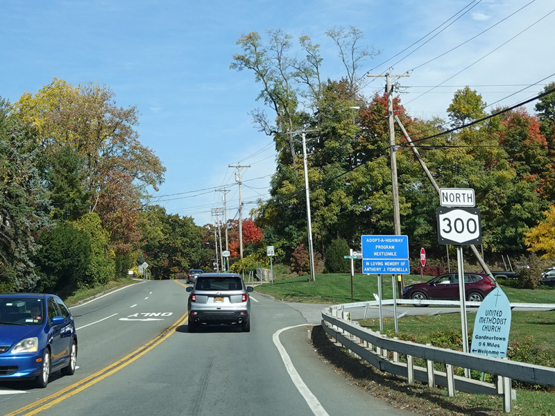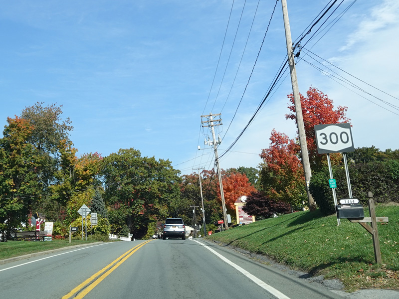 There is a traffic light at NY 32. Continue straight ahead to go north or turn right to go south. Turn left to stay on NY 300.
