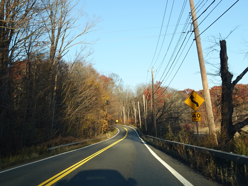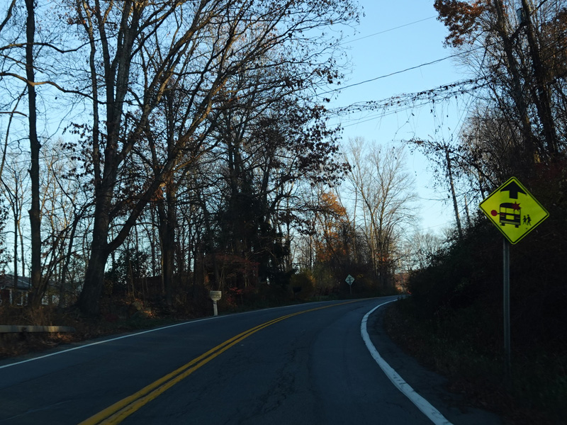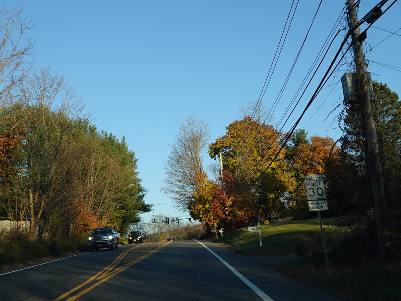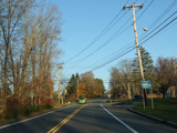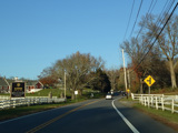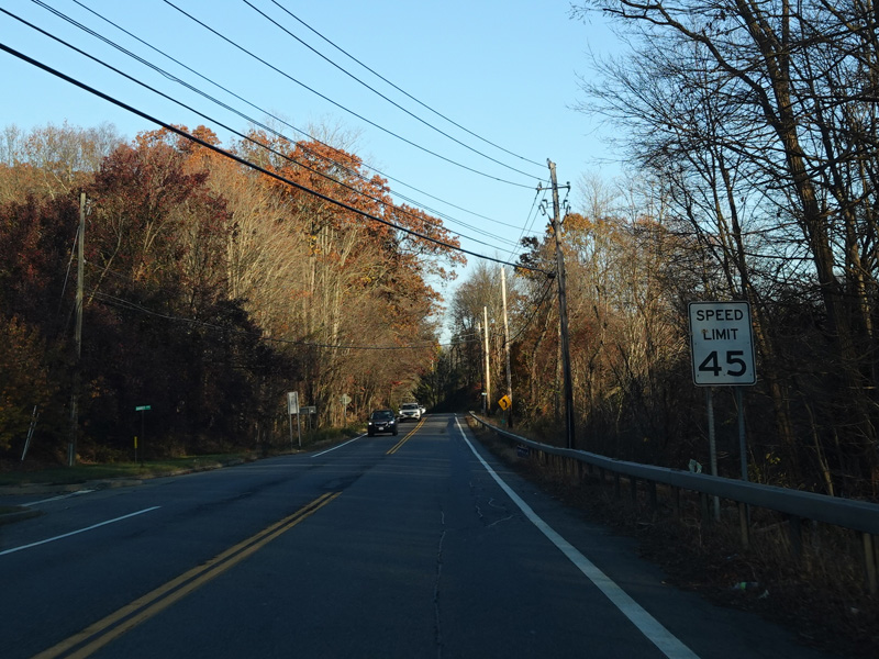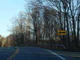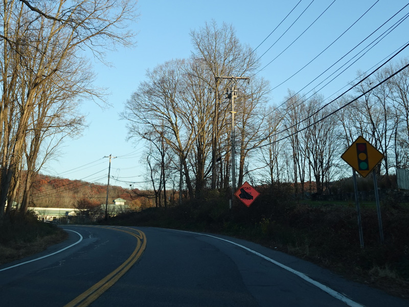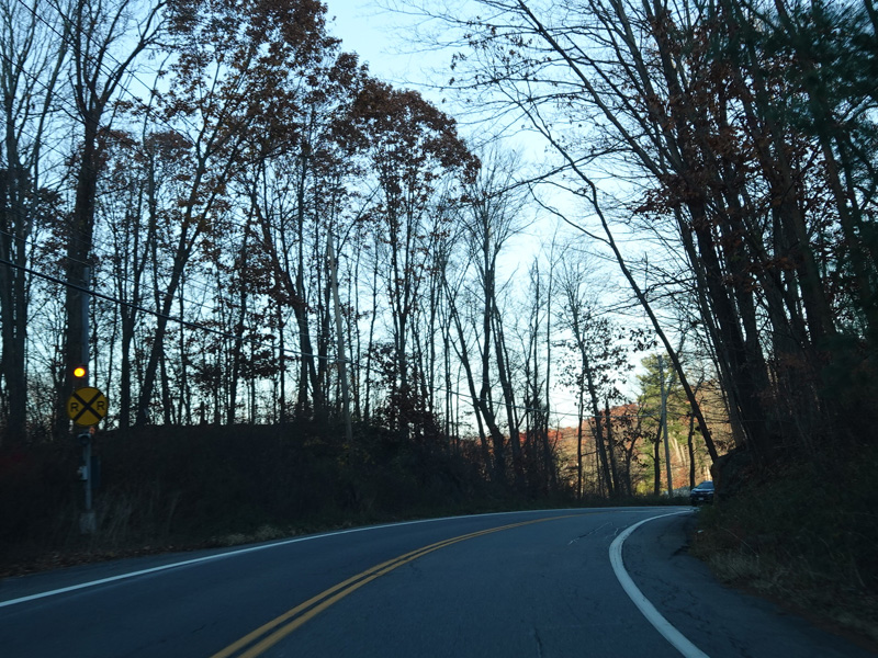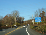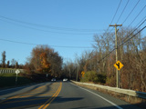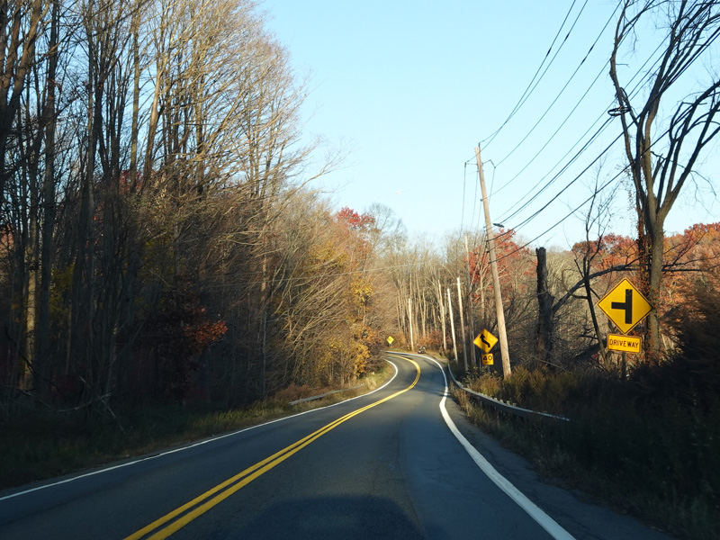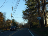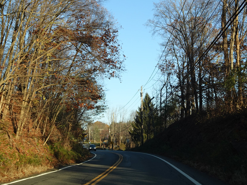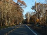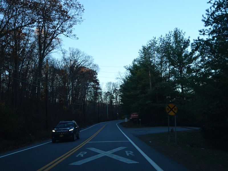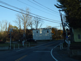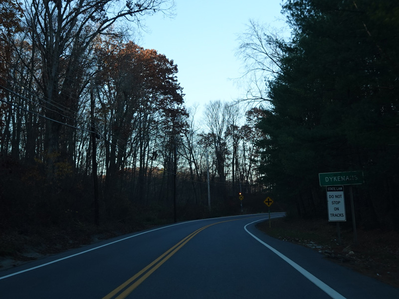 Welcome to Dykemans! There is a railroad crossing at the Harlem Line of the Metro-North Railroad. Further up the road, the Bog Brook Reservoir is on the right.
