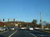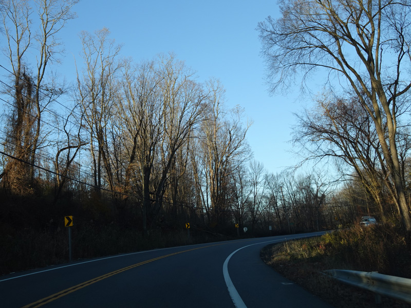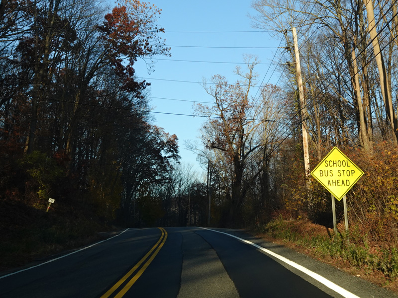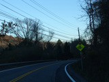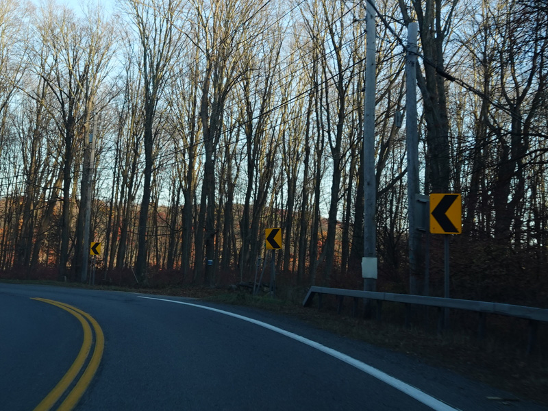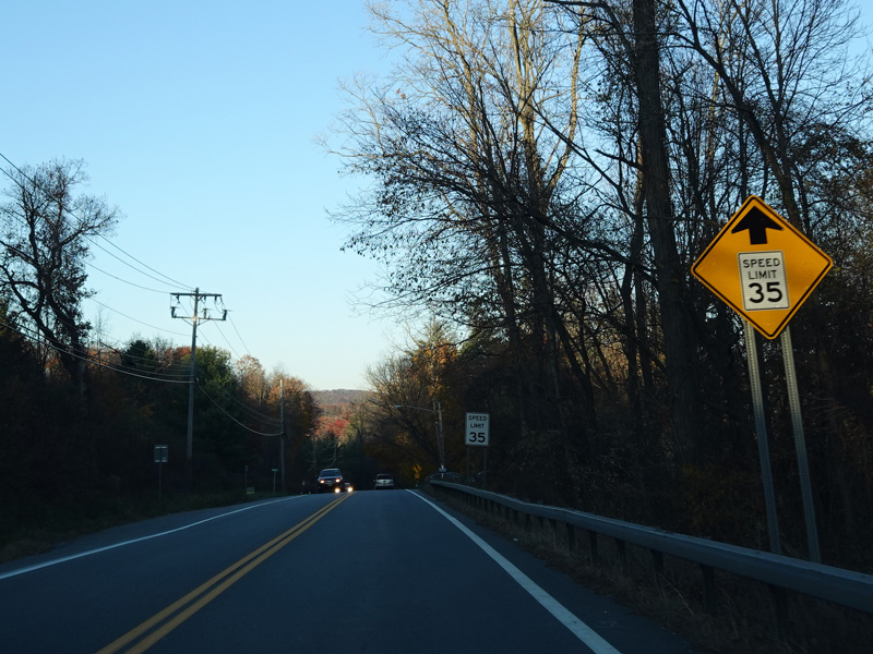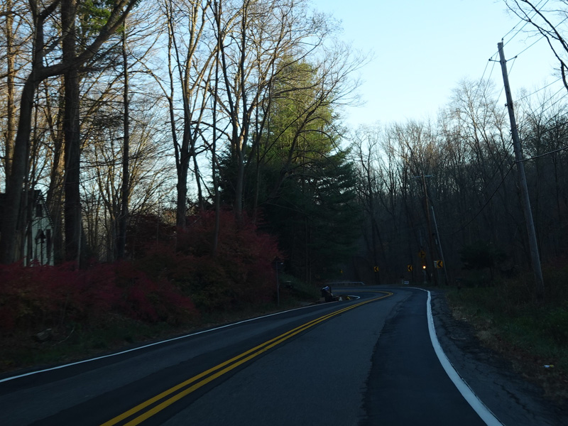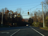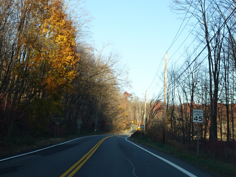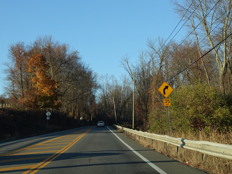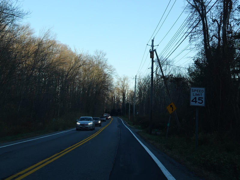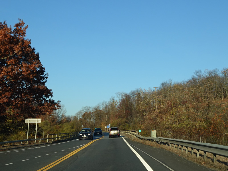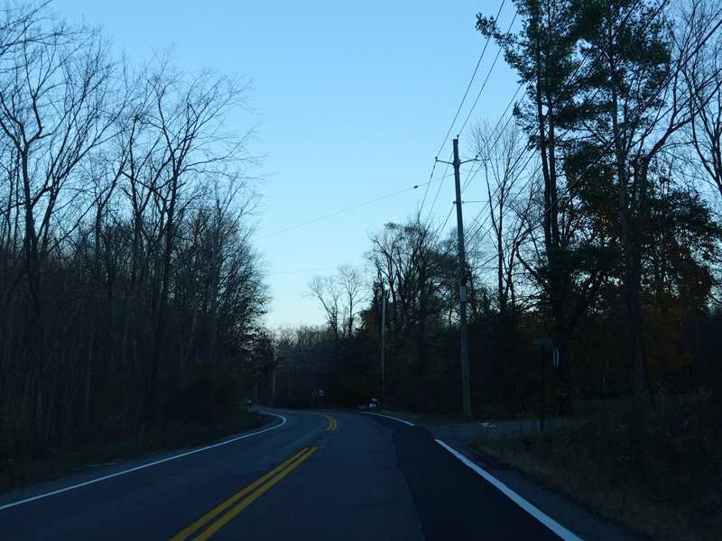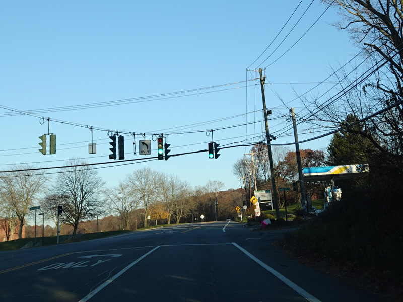 Welcome to Dykemans! There is a railroad crossing at the Harlem Line of the Metro-North Railroad. Further up the road, the Bog Brook Reservoir is on the right.