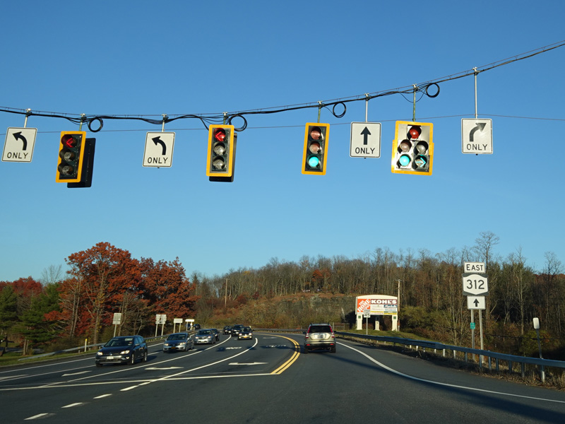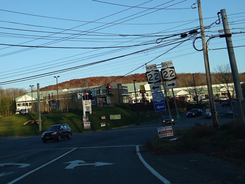 NY 312 ends at a traffic light at NY 22. Turn left to go north or right to go south.