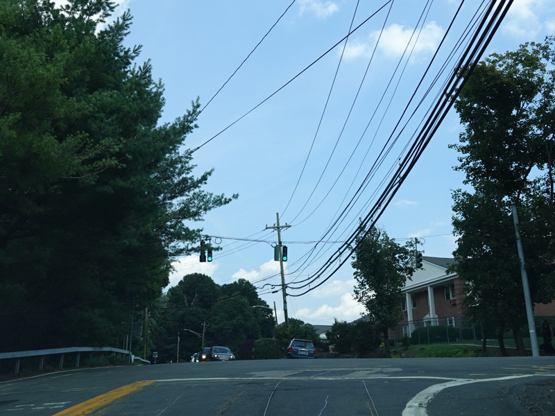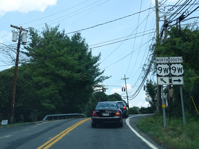 Hickey Street extends a couple of blocks to the east from Orangeburg Road (NY 340) to end at a traffic light at US 9W. Turn left to go north or right to go south.