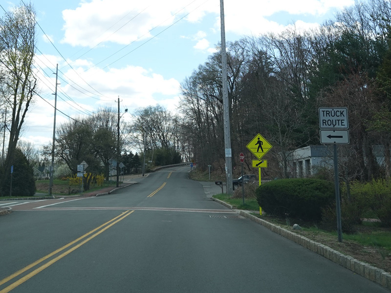 These pictures show Main Street in Sparkill as it appeared when it was designated Truck NY 340. The truck route designation was removed in 2022, and trucks are now prohibited on William Street.