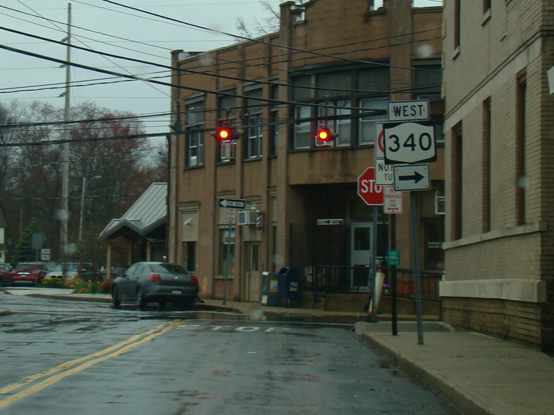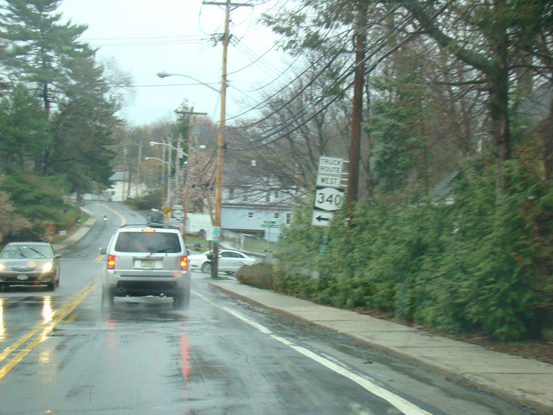NY 340 had a truck route along William Street and Main Street that began on the left here. This designation was in effect when these pictures were taken, but it was subsequently removed in 2022. Large trucks are now prohibited on William Street.