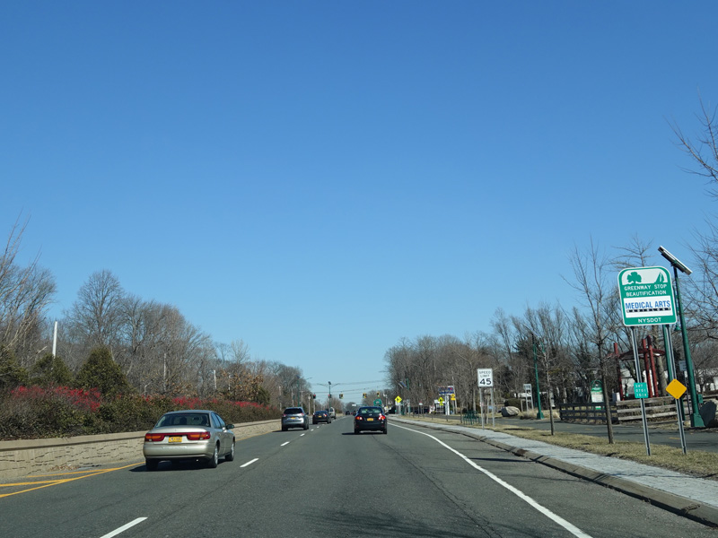NY 347 begins at the eastern terminus of the Northern Parkway and is multiplexed with NY 454 along Veterans Highway for a couple of miles.