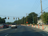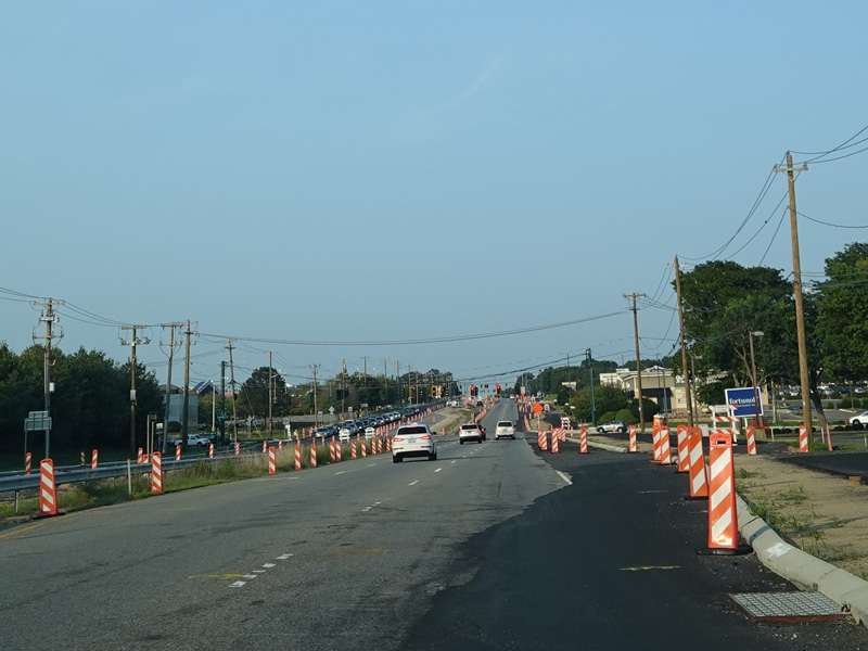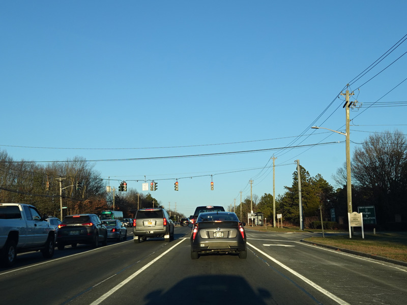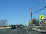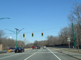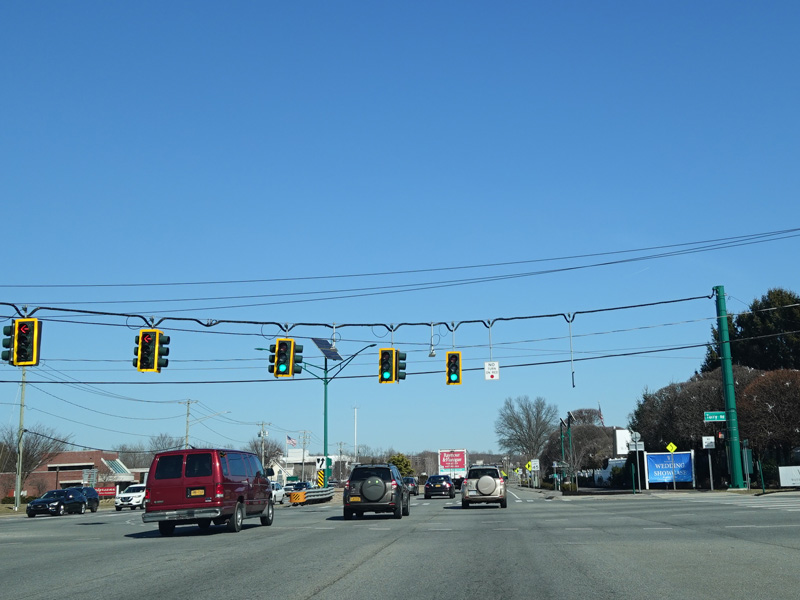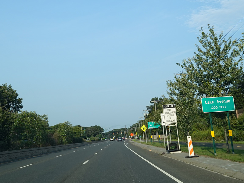 There are traffic lights at Southern Boulevard, Lake Avenue, and Gibbs Pond Road.