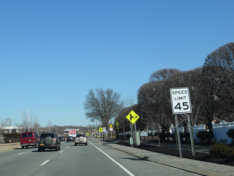 Welcome to Mount Sinai! Nesconset Highway ends here, merging into NY 25A.
