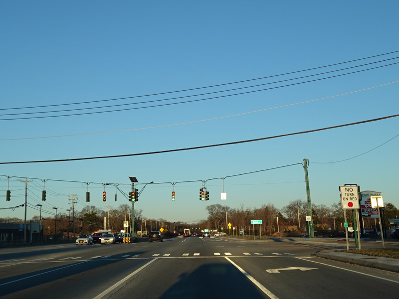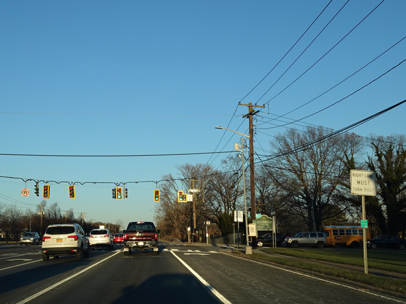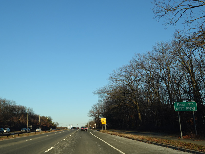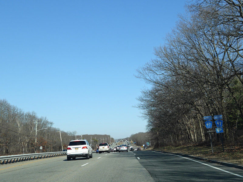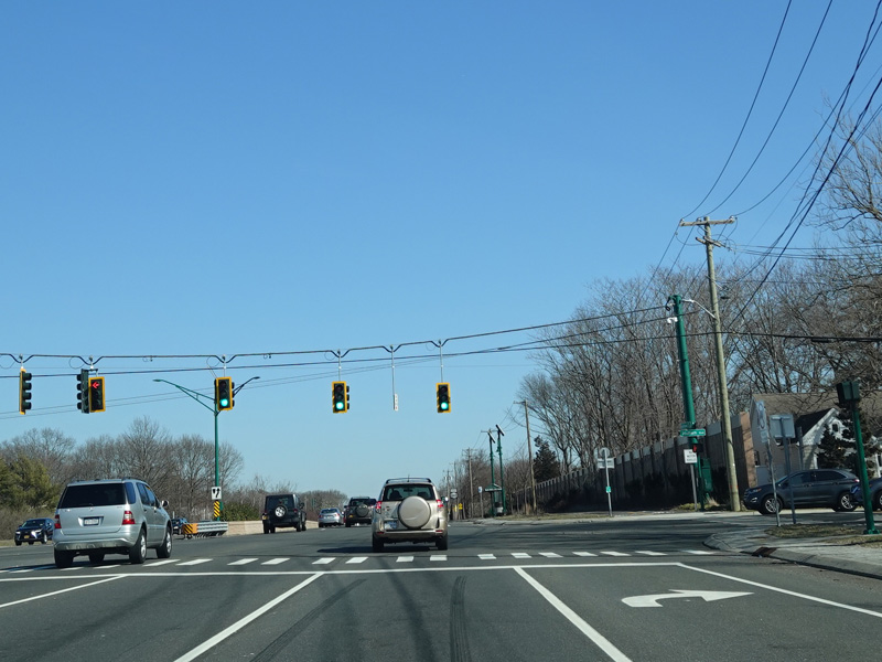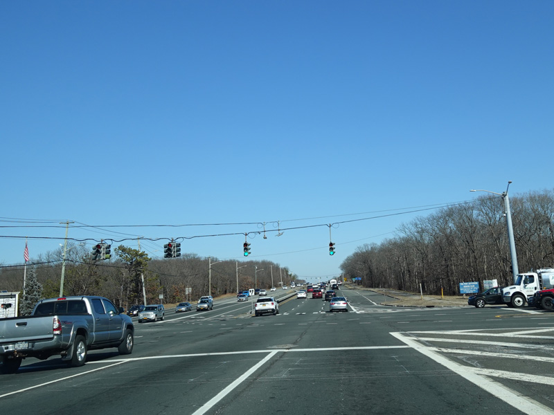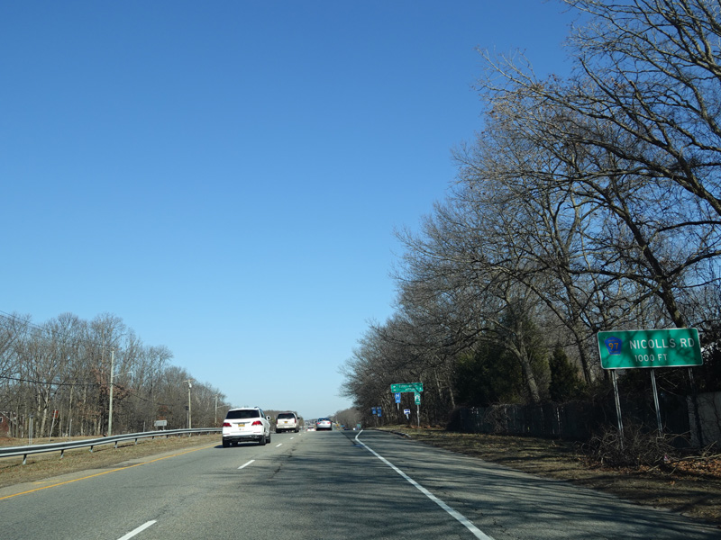 There is a traffic light at Nicolls Road (CR 97). Turn left to go north or right to go south.