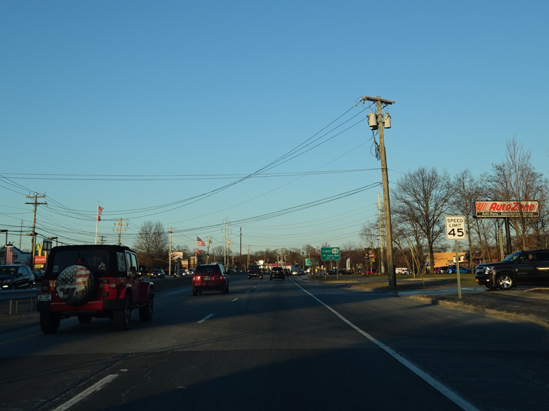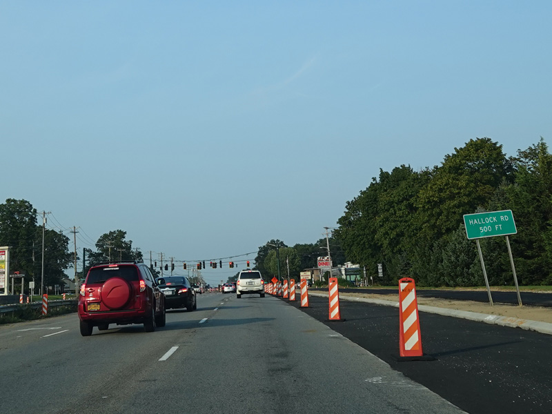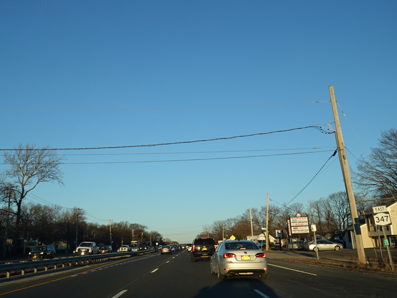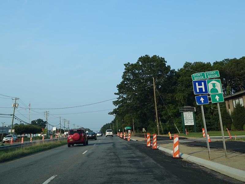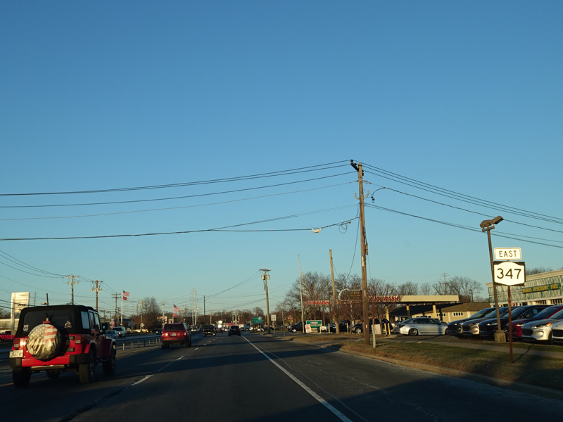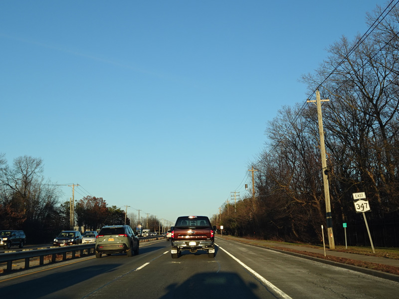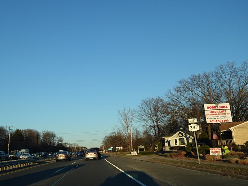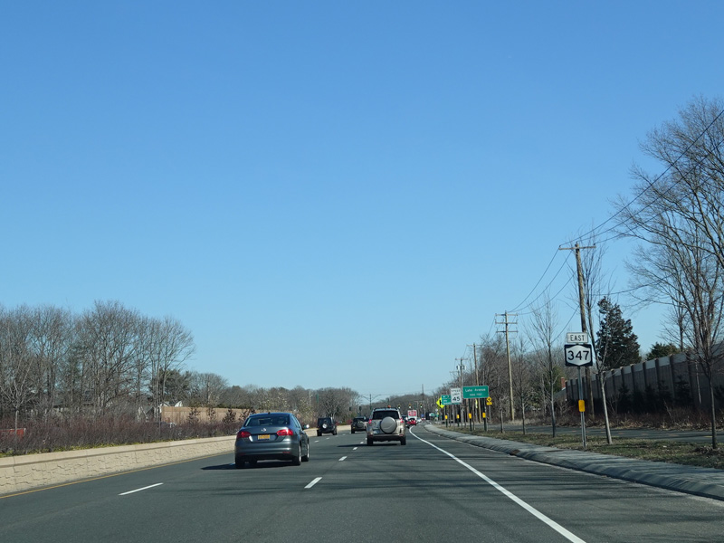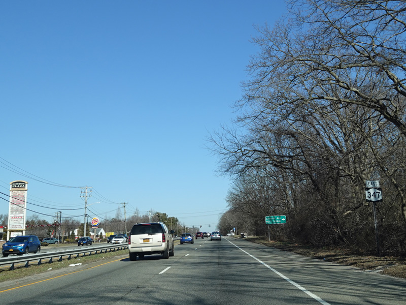 In the Town of Brookhaven, NY 347 is known as Nesconset Highway. There are traffic lights at Alexander Avenue, Moriches Road, New Moriches Road, Hallock Road, Stony Brook Road, and Lakeside Avenue. The Smith Haven Mall is along the right.