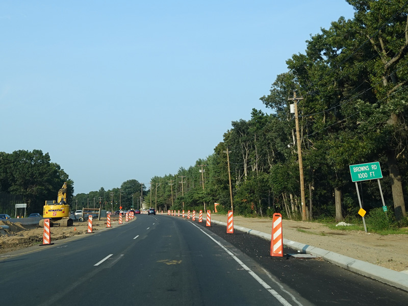 Construction work is currently in progress to widen this section to six lanes. There is a traffic light at Browns Road.