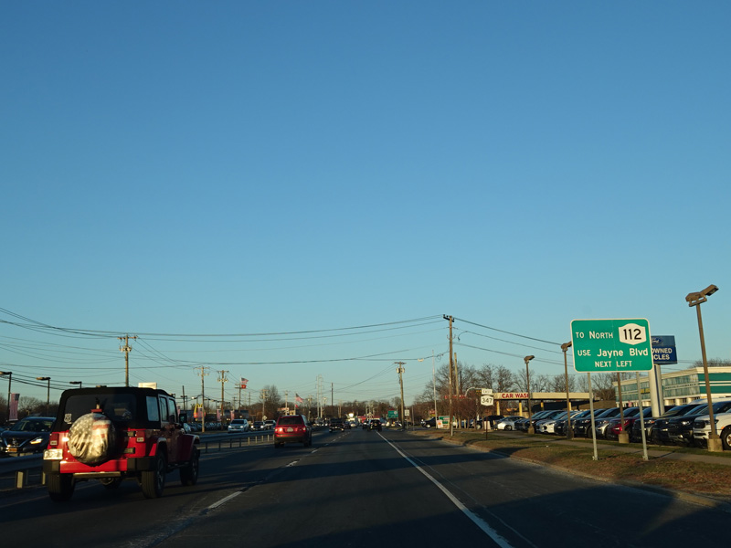 There is a traffic light at Jayne Boulevard. Turn left to go north on Patchogue Road (NY 112).