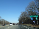There is a traffic light at Middle Country Road (NY 25). Exit to the right to go east. Left turns are not allowed.