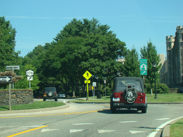 NY 376 is a north/south route in the southern half of Dutchess County. It extends from NY 52 in Hopewell Junction to Maple Street (US 44/NY 55) in Poughkeepsie. The entire length is a two-lane road. Most of it is undivided, although there is a divided section with traffic circles in Poughkeepsie near the campus of Vassar College.