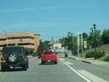 The median ends. There is a traffic light at Haight Avenue (US 44/NY 55). Turn right to go east. US 44/NY 55 is routed along a pair of parallel one-way streets in this area, so continue straight ahead on Raymond Avenue for the turn to go west.
