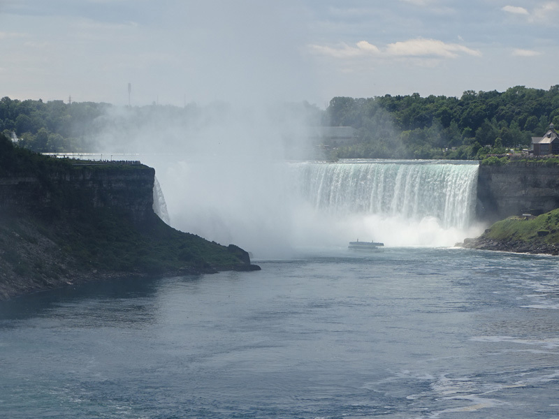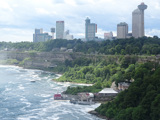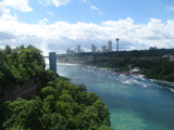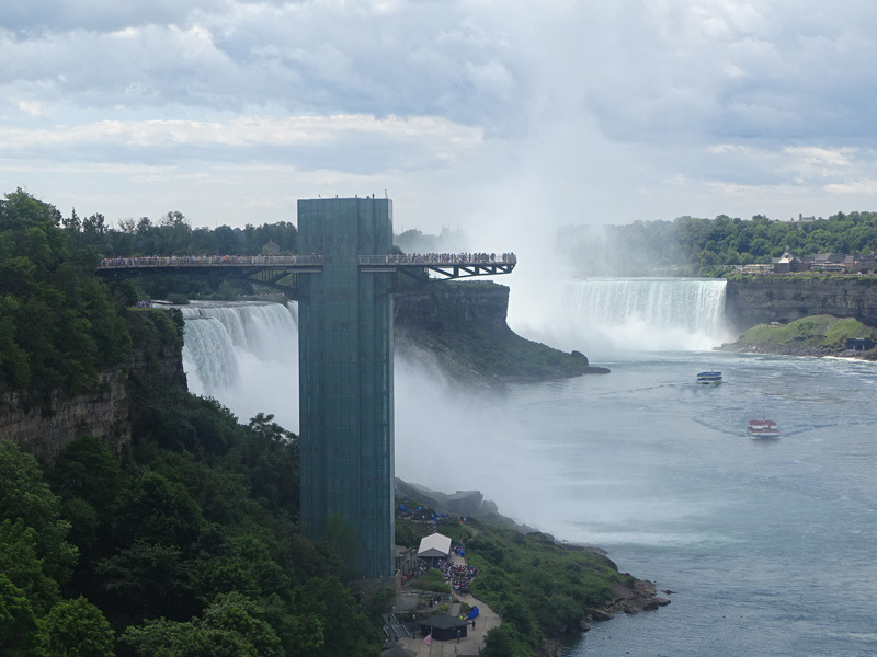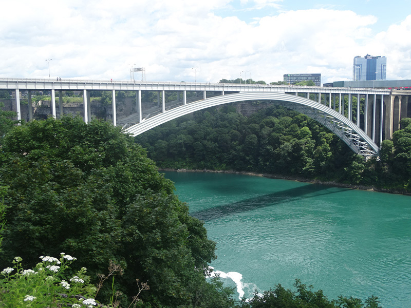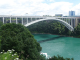 These pictures show Niagara Falls as observed from walking across the Rainbow Bridge.
