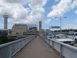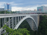 This picture shows the pedestrian walkway on the Rainbow Bridge, facing toward Canada.