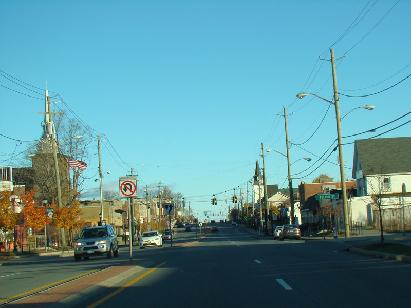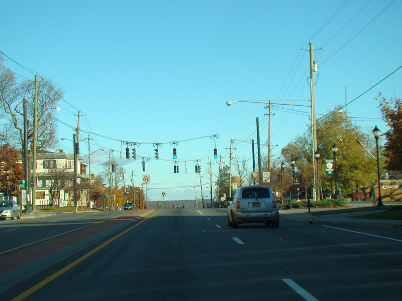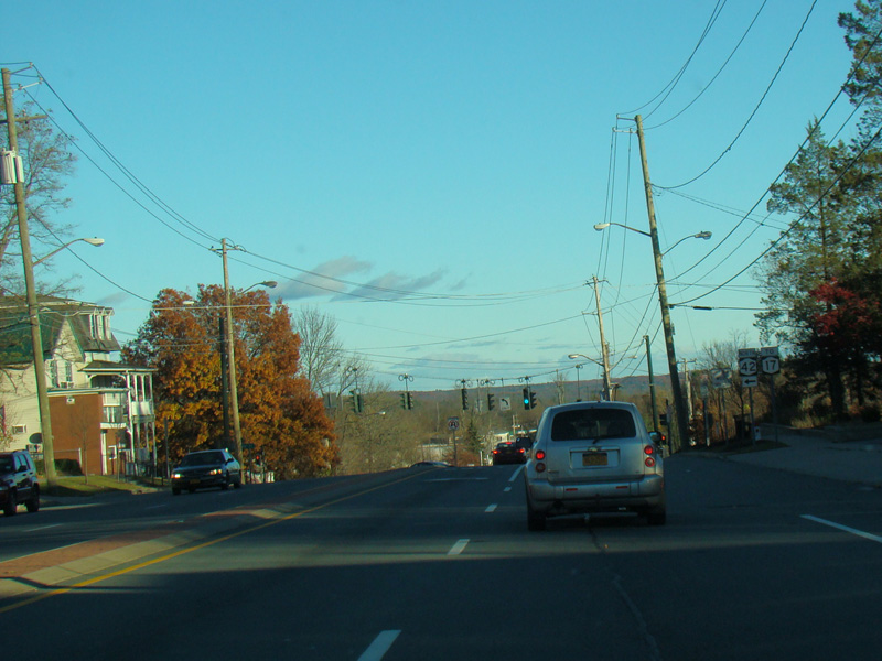 Turn left onto Pleasant Street at this traffic light to stay on NY 42.