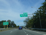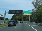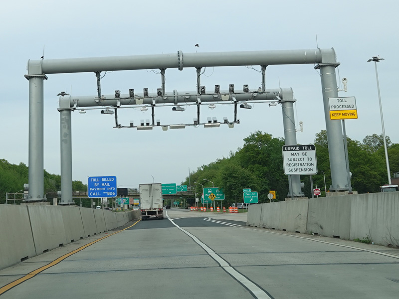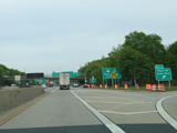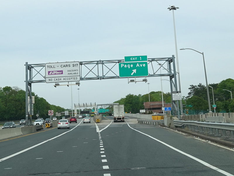 Welcome to New York! All motorists must pay a toll after coming off the Outerbridge Crossing. Exit 1 is for Page Avenue.