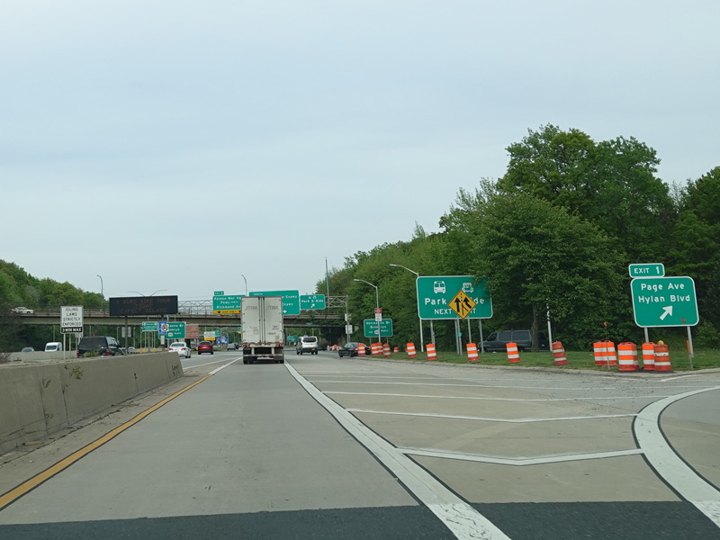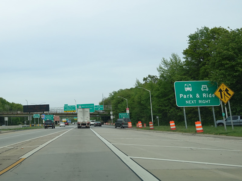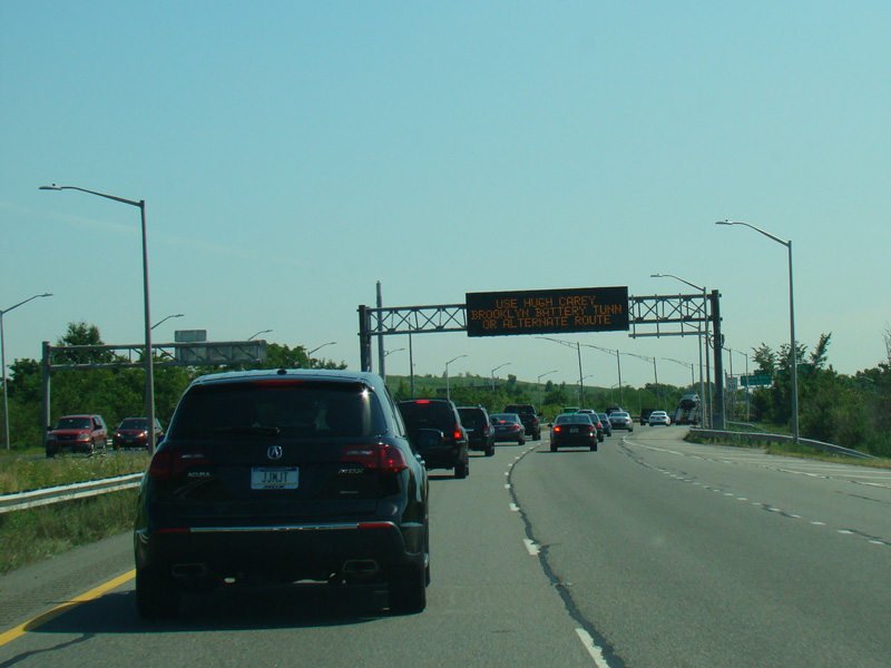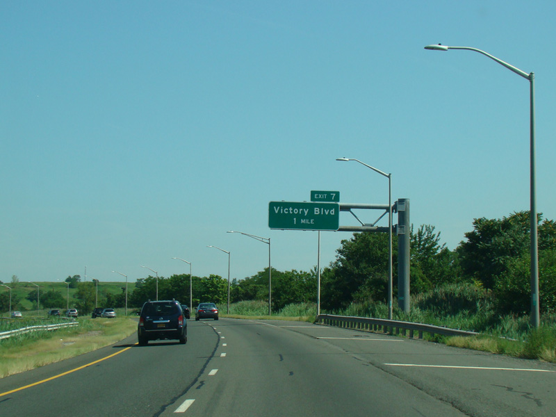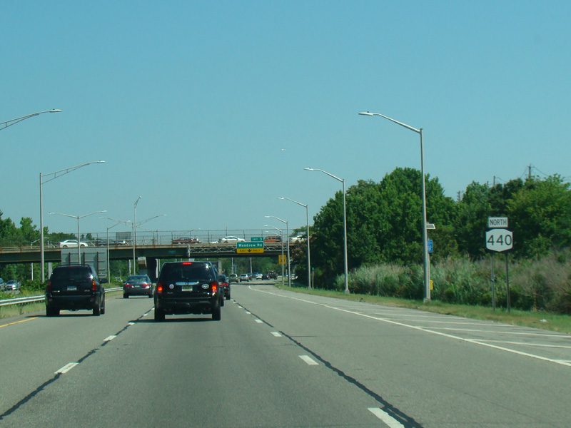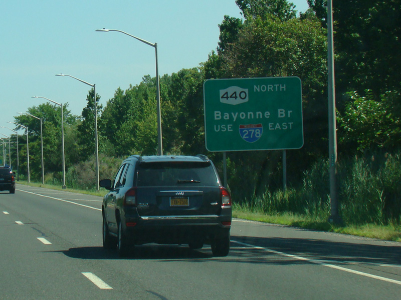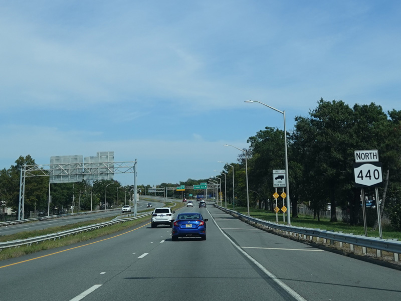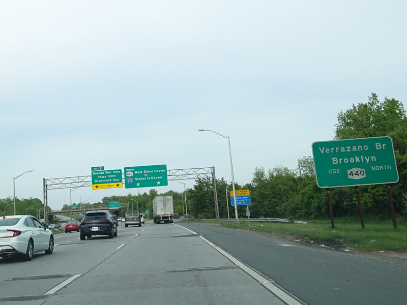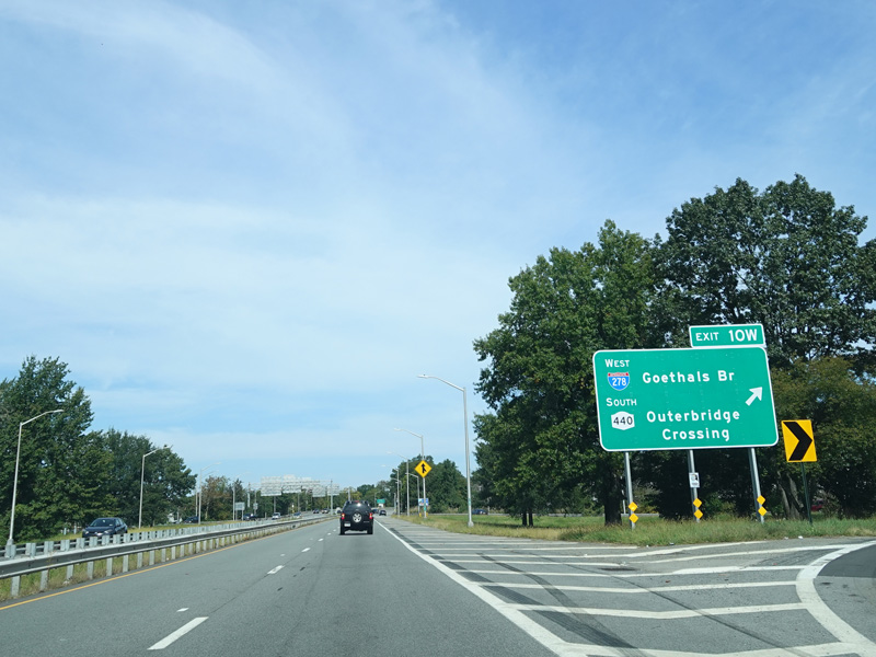 The West Shore Expressway ends here at the Staten Island Expressway (I-278). Northbound NY 440 is multiplexed with eastbound I-278 for a few exits.