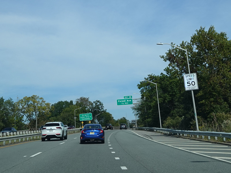 NY 440 splits off from the Staten Island Expressway at exit 9. The ramp merges with a ramp from Victory Boulevard to form the Dr. Martin Luther King Jr. Expressway. This highway was originally known as the Willowbrook Expressway but was renamed in honor of the civil rights leader. Exit 10W is for the Staten Island Expressway (I-278) west. Its primary purpose is to serve motorists coming from Victory Boulevard who wish to access westbound I-278.