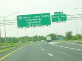 These pictures show the signage coming off the Outerbridge Crossing as it appeared just after the conversion to cashless tolling. The signs have since been replaced.