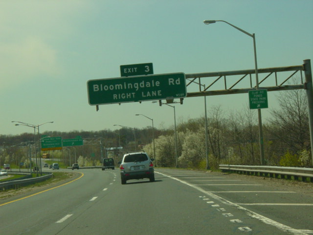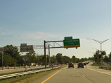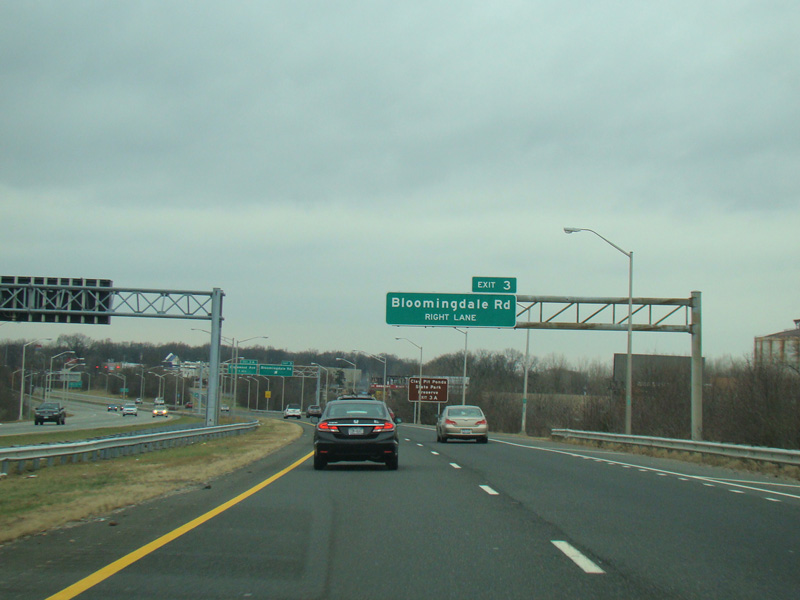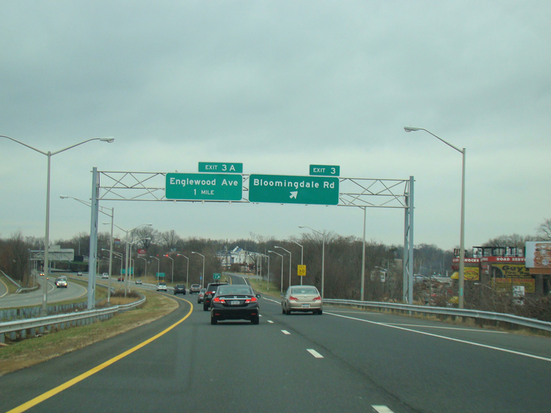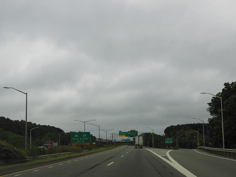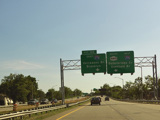 These signs were still standing as of 2015 but have since been replaced. What was then exit 3 has been renumbered exit 3B.