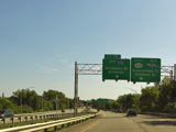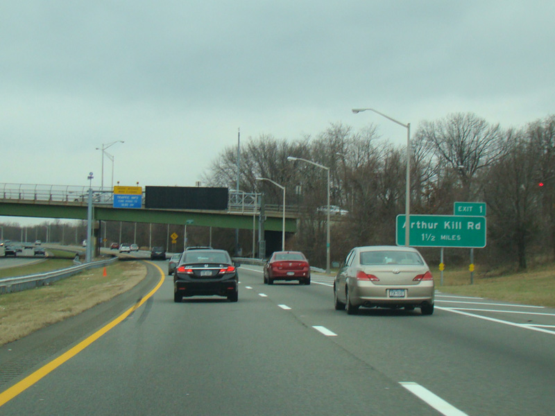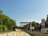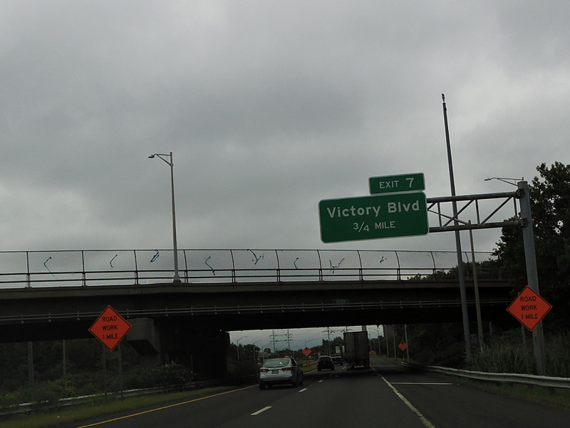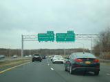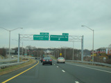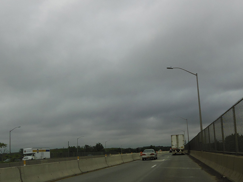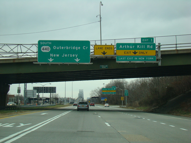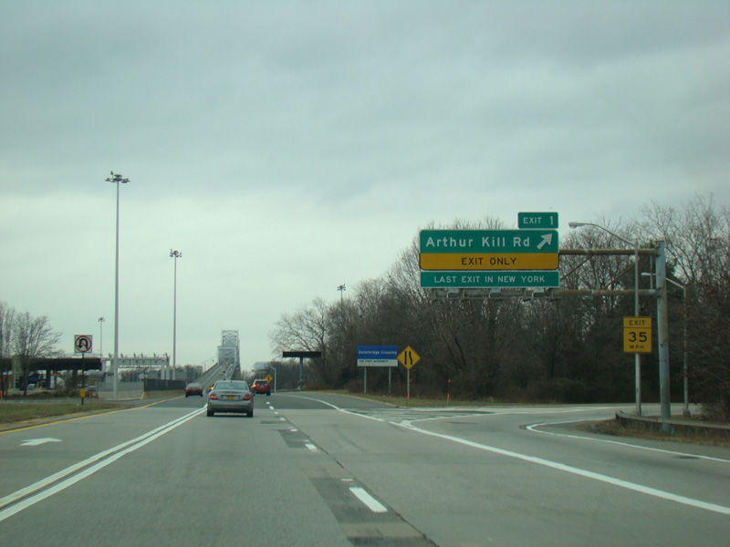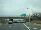 These pictures show the beginning of NY 440 as it appeared while construction work was in progress to raise the roadway on the Bayonne Bridge. The roadway coming off the bridge was temporarily narrowed down to two lanes, and exit 13 was closed in this direction.