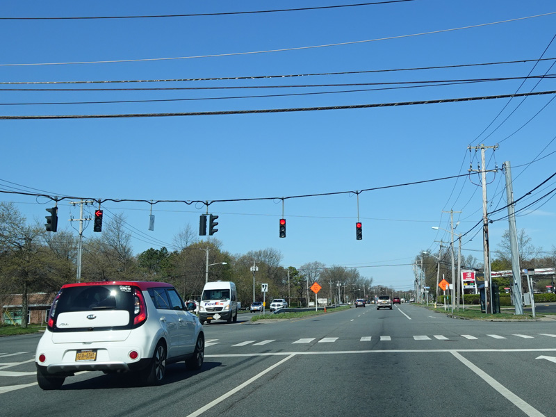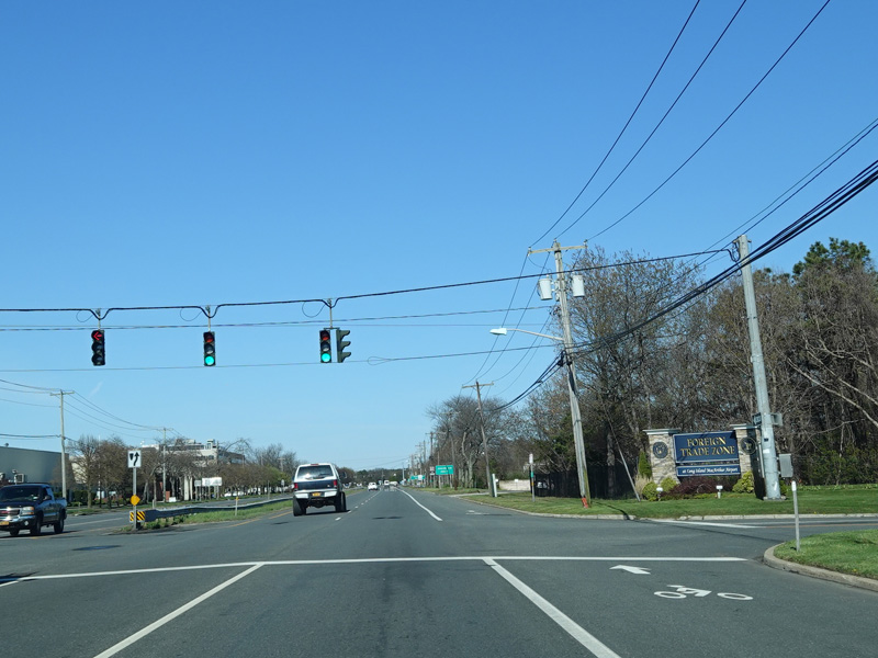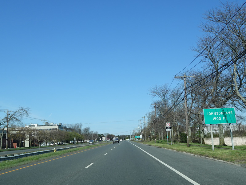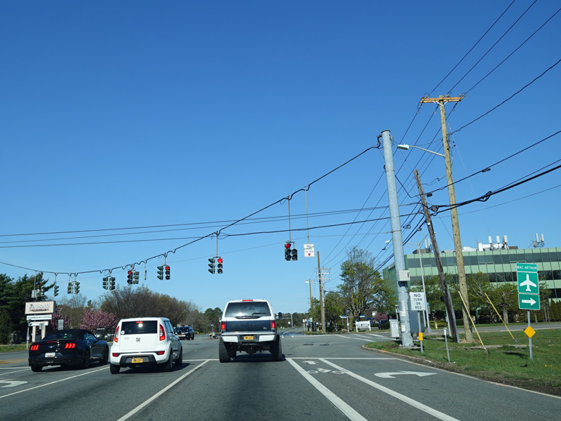 Johnson Avenue (CR 112) begins on the left at a traffic light. Turn right for Long Island MacArthur Airport.