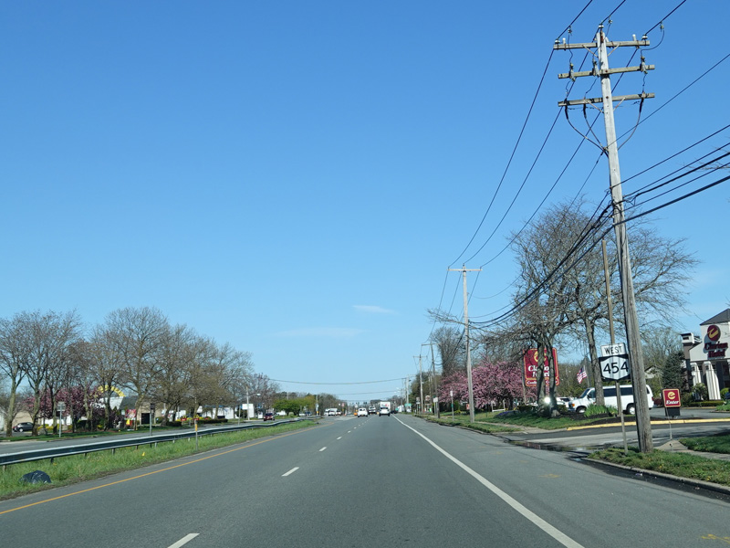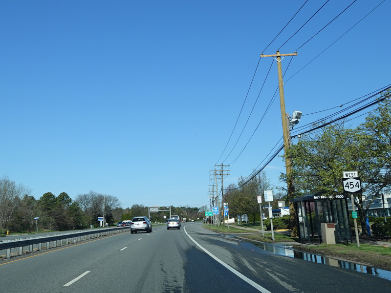 Veterans Highway runs east through Hauppauge. It is designated NY 347/NY 454 in this area.