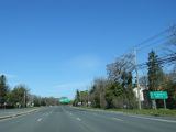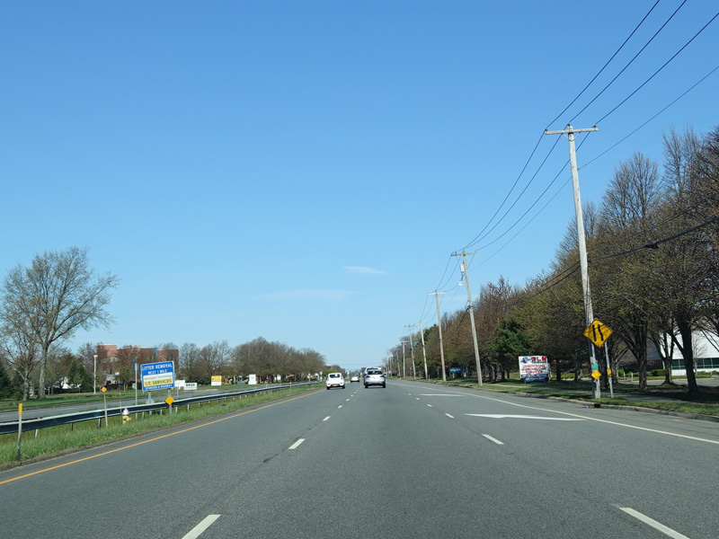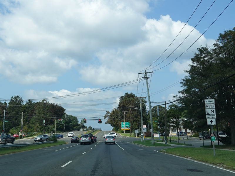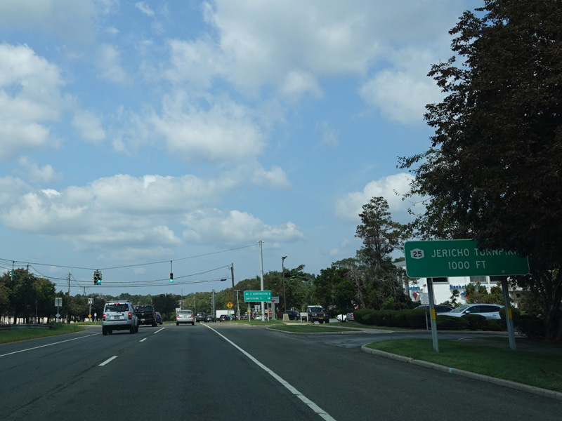 Veterans Highway ends at a traffic light at Jericho Turnpike (NY 25). Turn right to go east or left to go west.