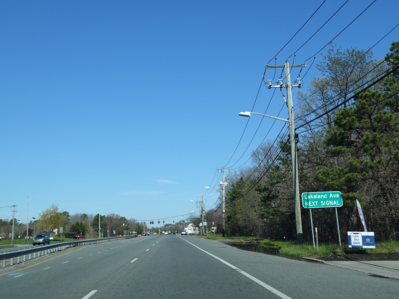 There is a traffic light at Lakeland Avenue (CR 93). Turn right to go north or left to go south. There is no county route signage at this intersection.
