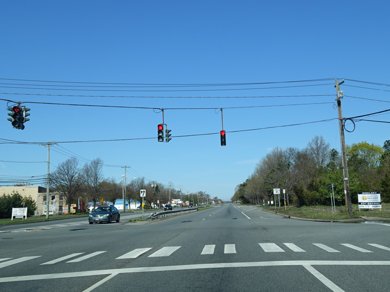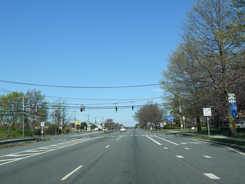 There is a traffic light at NY 347. Turn right onto Smithtown Bypass to go east. Westbound NY 347 is multiplexed with NY 454 along Veterans Highway straight ahead.
