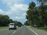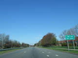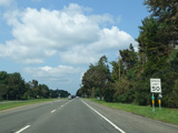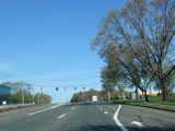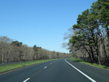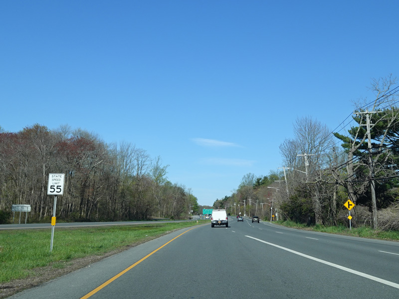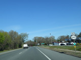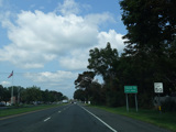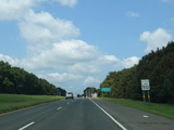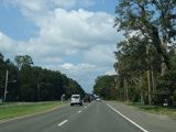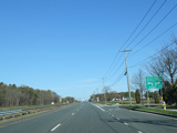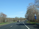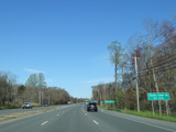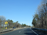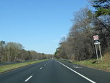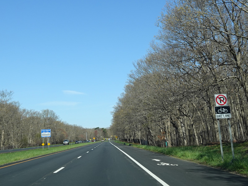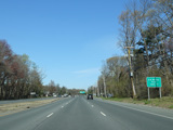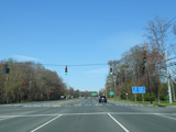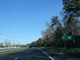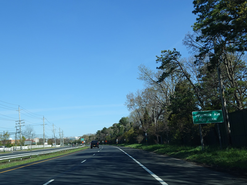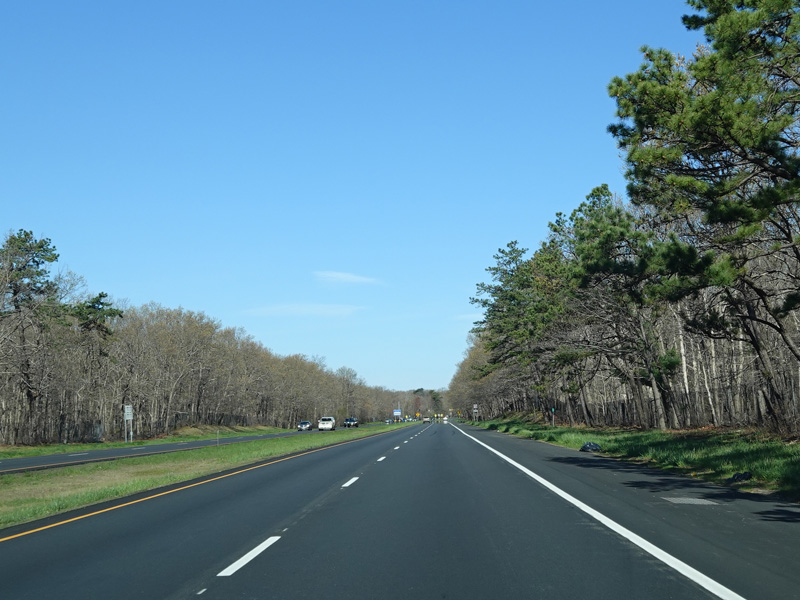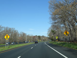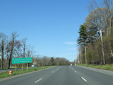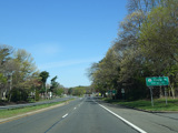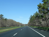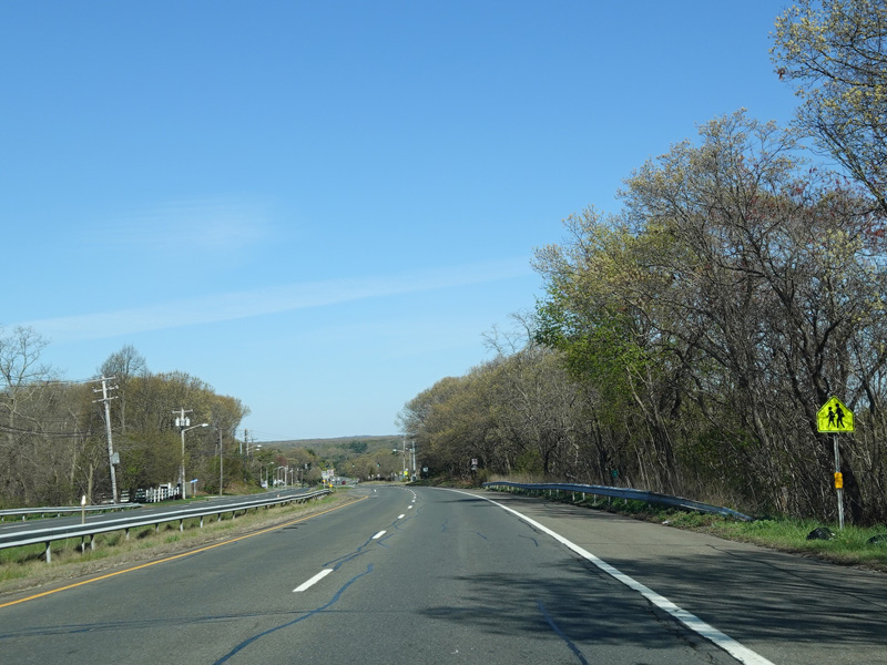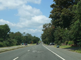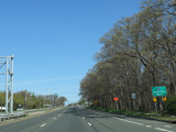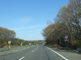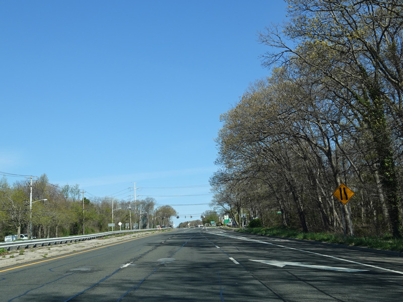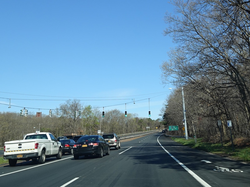 There is a stretch with no intersections as Veterans Highway passes through the northern end of Connetquot River State Park Preserve.