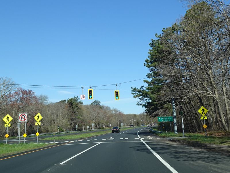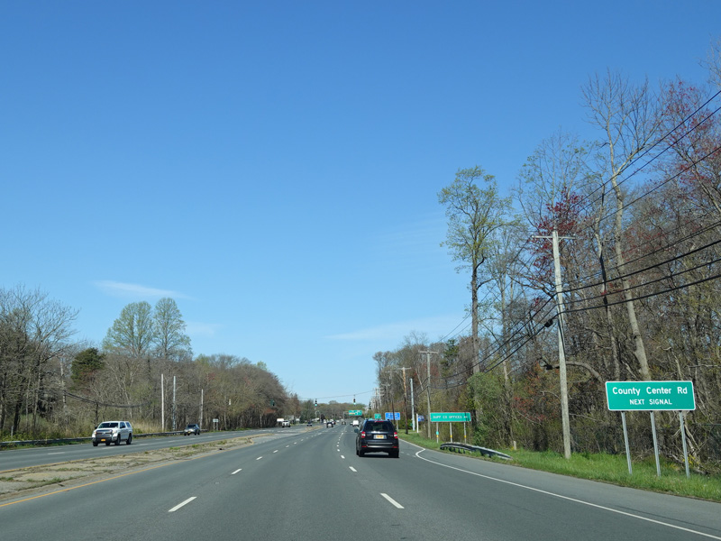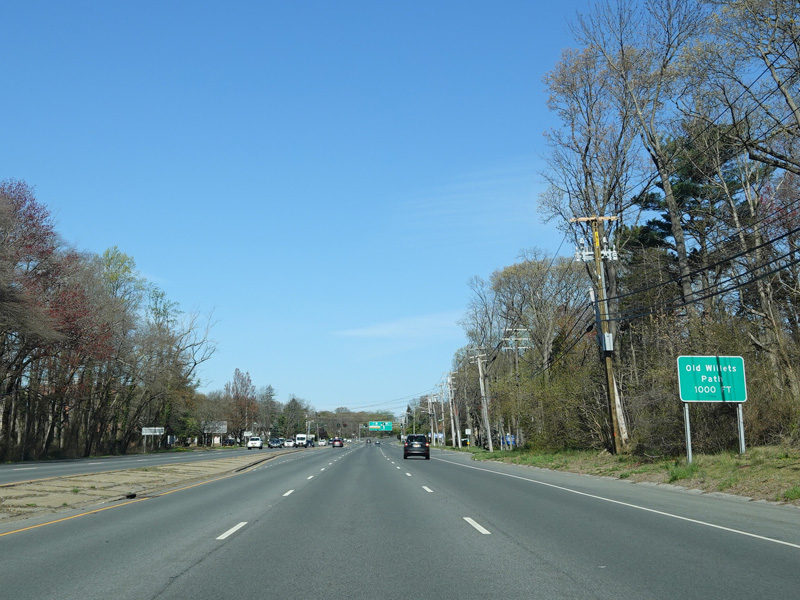 There are traffic lights at County Center Road, Old Willets Path, and New Highway.