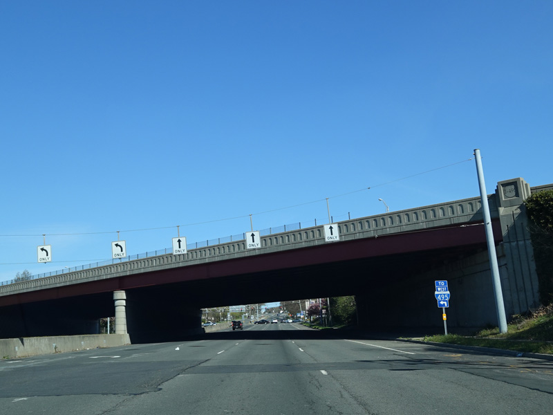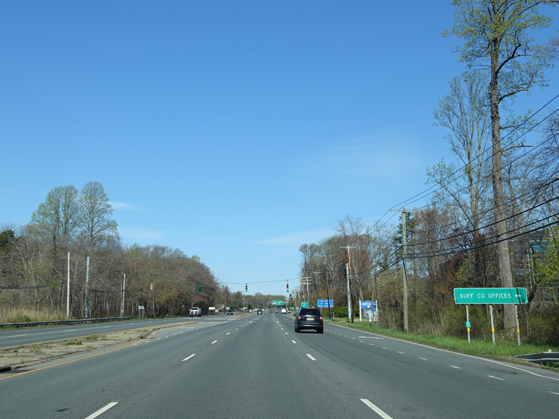 There is an interchange with the Long Island Expressway (I-495). Immediately before the interchange, there is a traffic light at Blydenburgh Road.