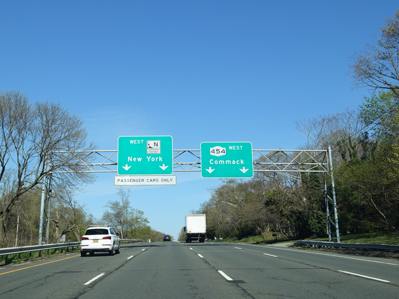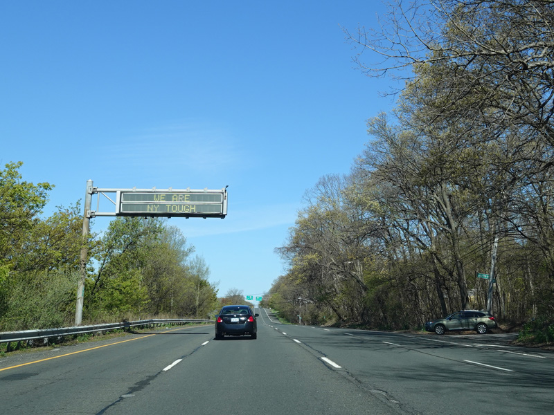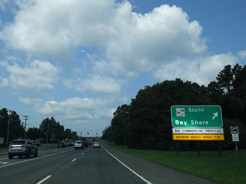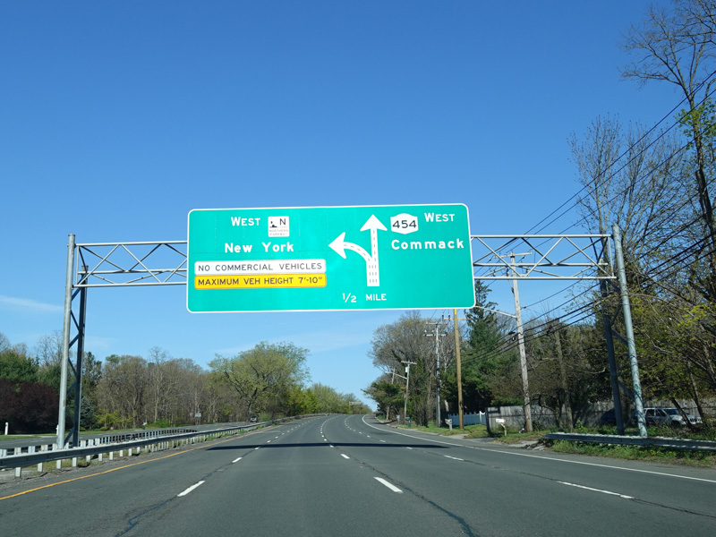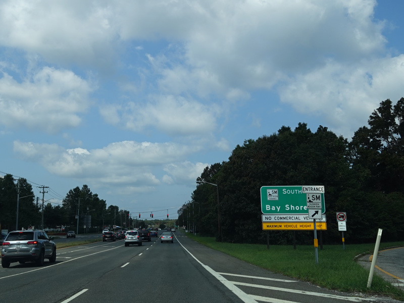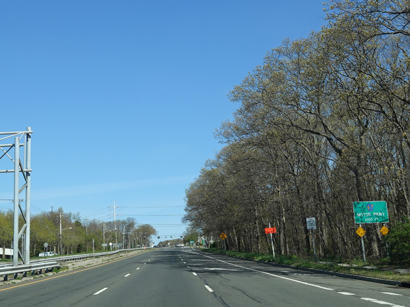 There is a partial interchange with the Sunken Meadow Parkway. Bear right to go south.