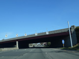 Veterans Highway passes over the Main Line of the Long Island Rail Road. Immediately after the overpass, Suffolk Avenue (CR 100) begins on the left at a traffic light. Old Nichols Road begins on the right.