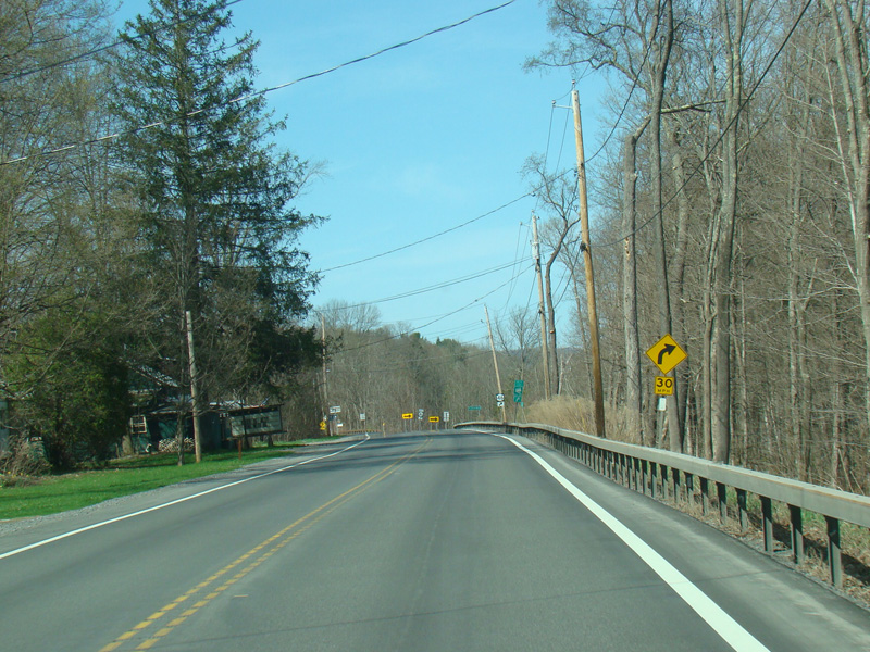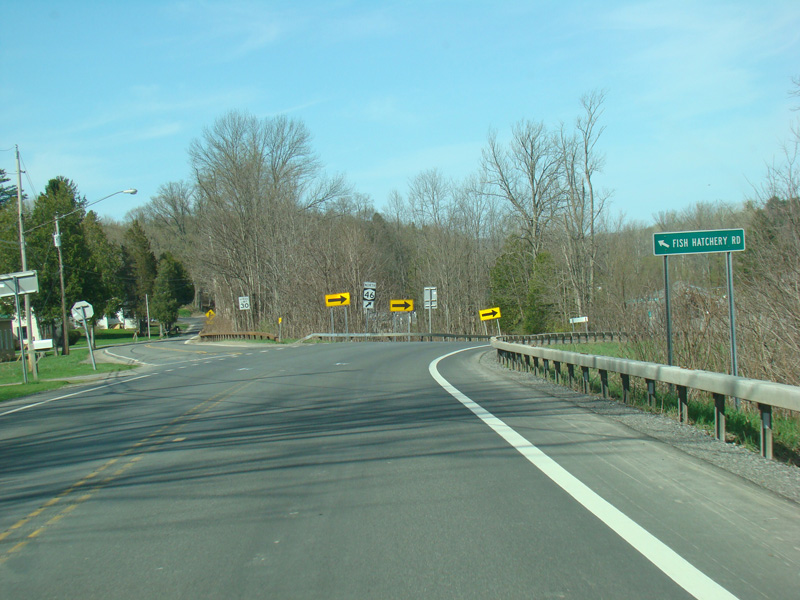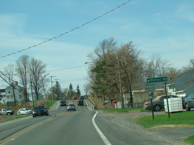 Heading out of the downtown area, Black River Boulevard narrows down to two lanes and changes names to become Ridge Mills Road and then Rome-Westernville Road. Potter Road, Elmer Hill Road, and Fish Hatchery Road begin on the left along this stretch.
