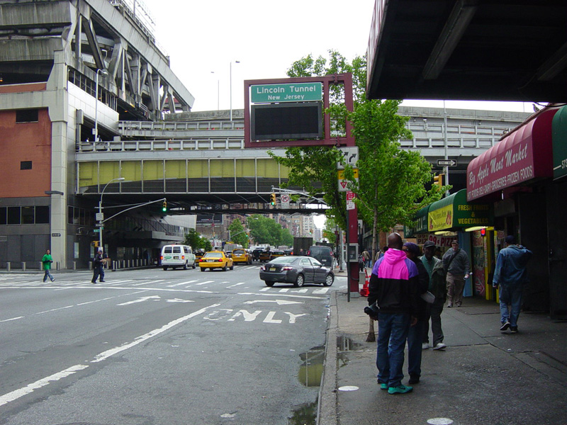 There is an entrance to the tunnel from 9 Avenue in Manhattan. It is marked by a pair of identical sign assemblies with variable message signs.