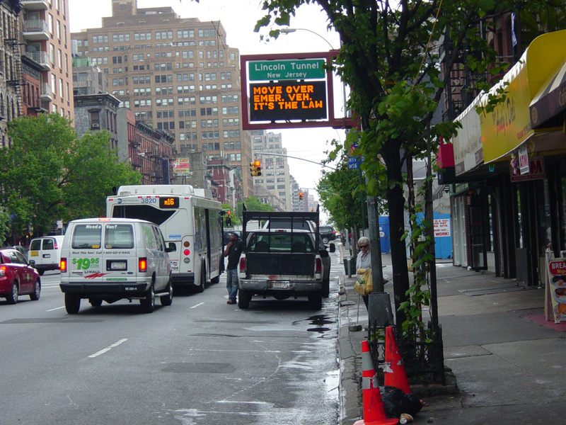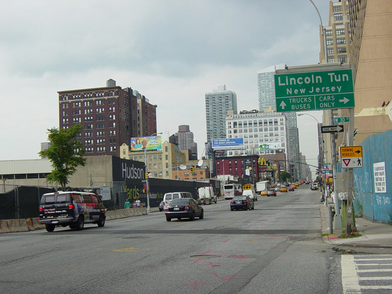 There is an overhead sign on 10 Avenue instructing motorists to turn right on West 30 Street for access to the tunnel. This entrance is closed to trucks, which must continue north until West 39 Street.