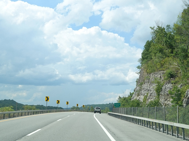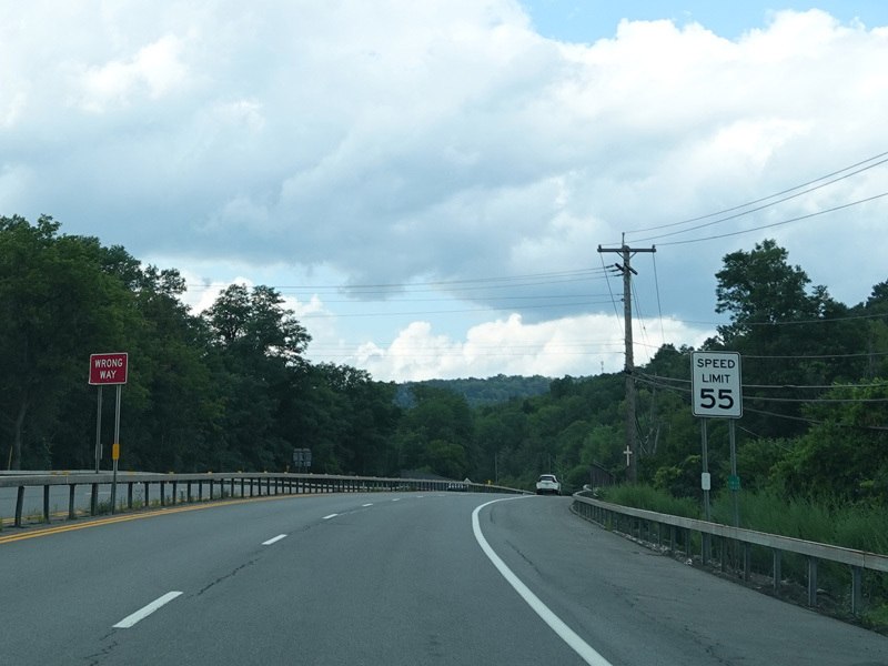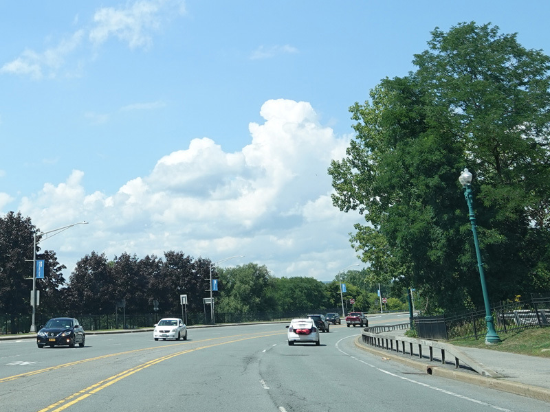 Skipping a couple of miles, Amsterdam Road runs west as a four-lane divided highway.