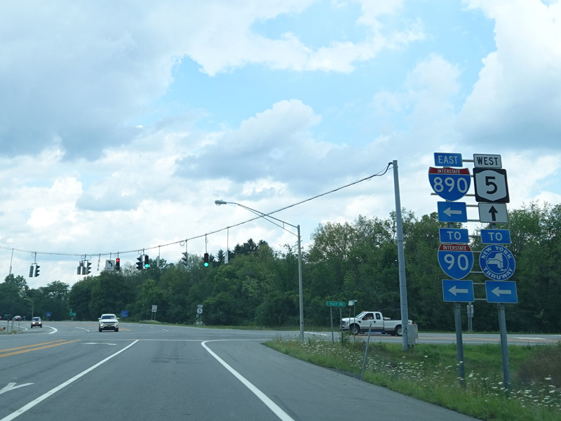 NY 890 begins on the left at a traffic light. Most of the signs make reference to I-890, which begins after a couple of exits at the New York Thruway (I-90).