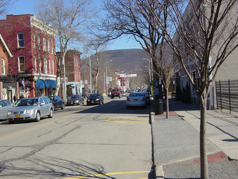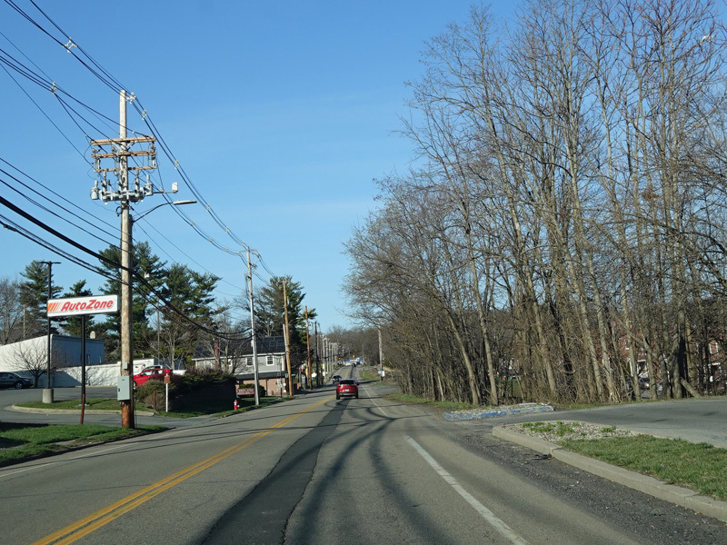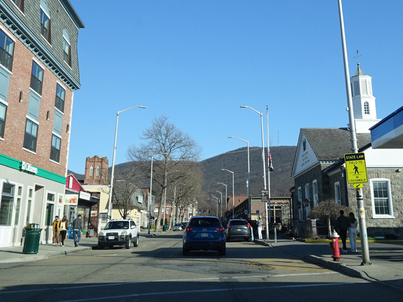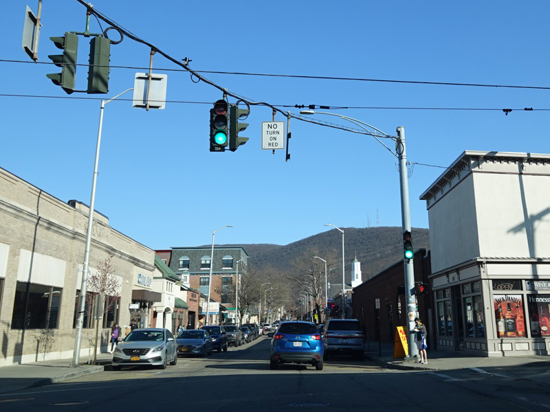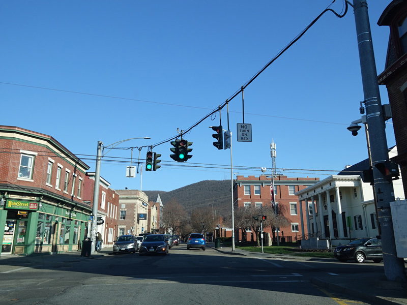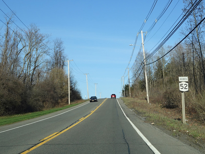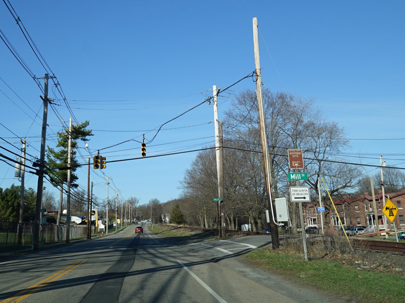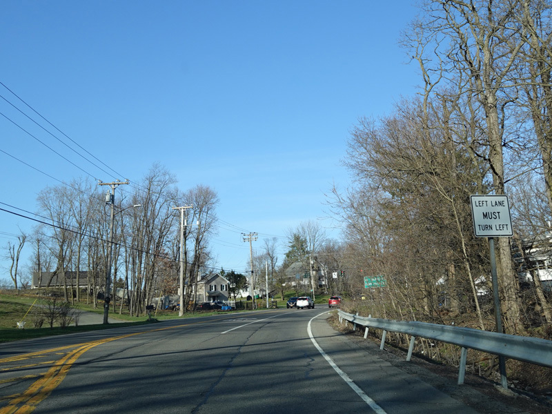 There is a traffic light at Fishkill Avenue. Turn left here to stay on Business NY 52. There is no route signage at this intersection.