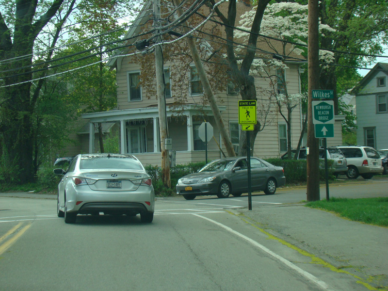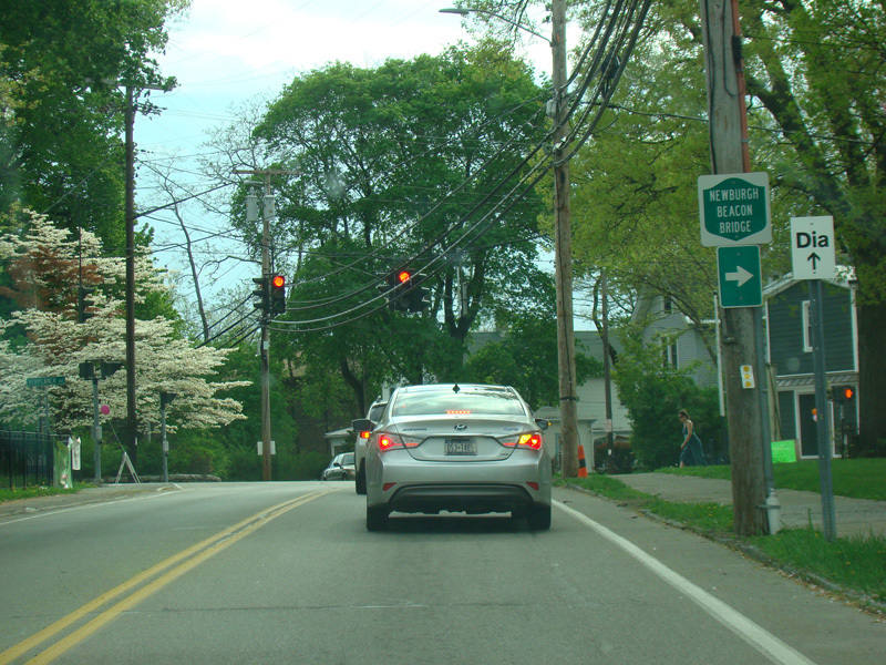 Signs direct motorists to turn right at Verplanck Avenue from the Newburgh-Beacon Bridge.